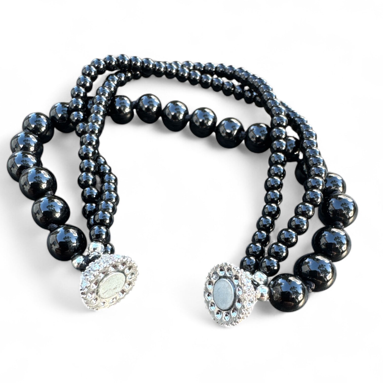 Black Agate Magnetic beaded Bracelet 7.5 inch