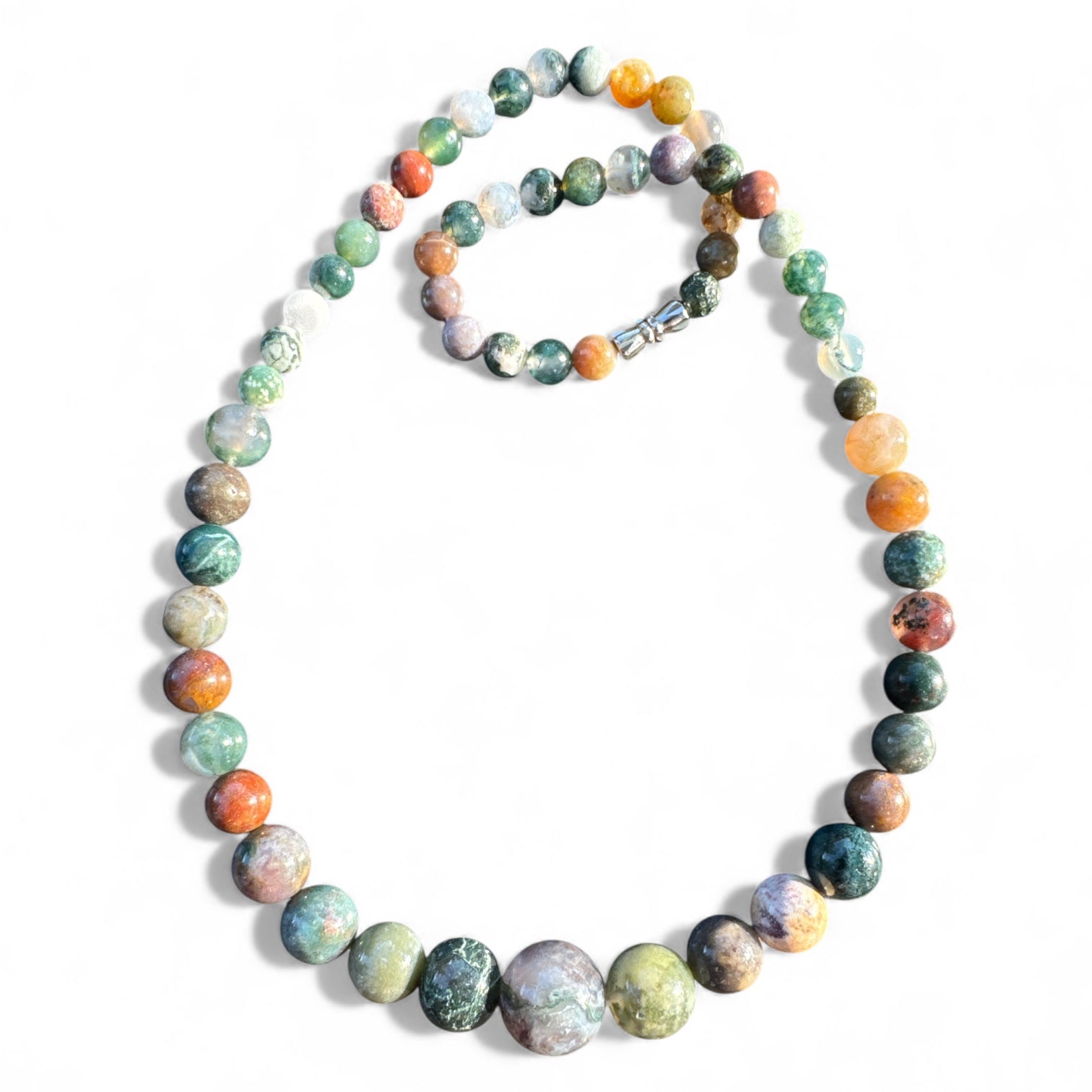 Indian Agate Graduated Beaded Necklace – 18” Natural Gemstone Jewelry, Handcrafted
