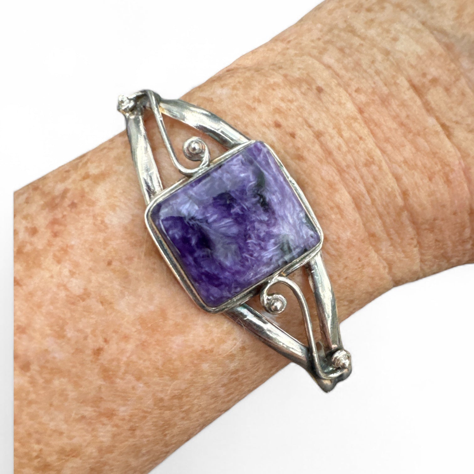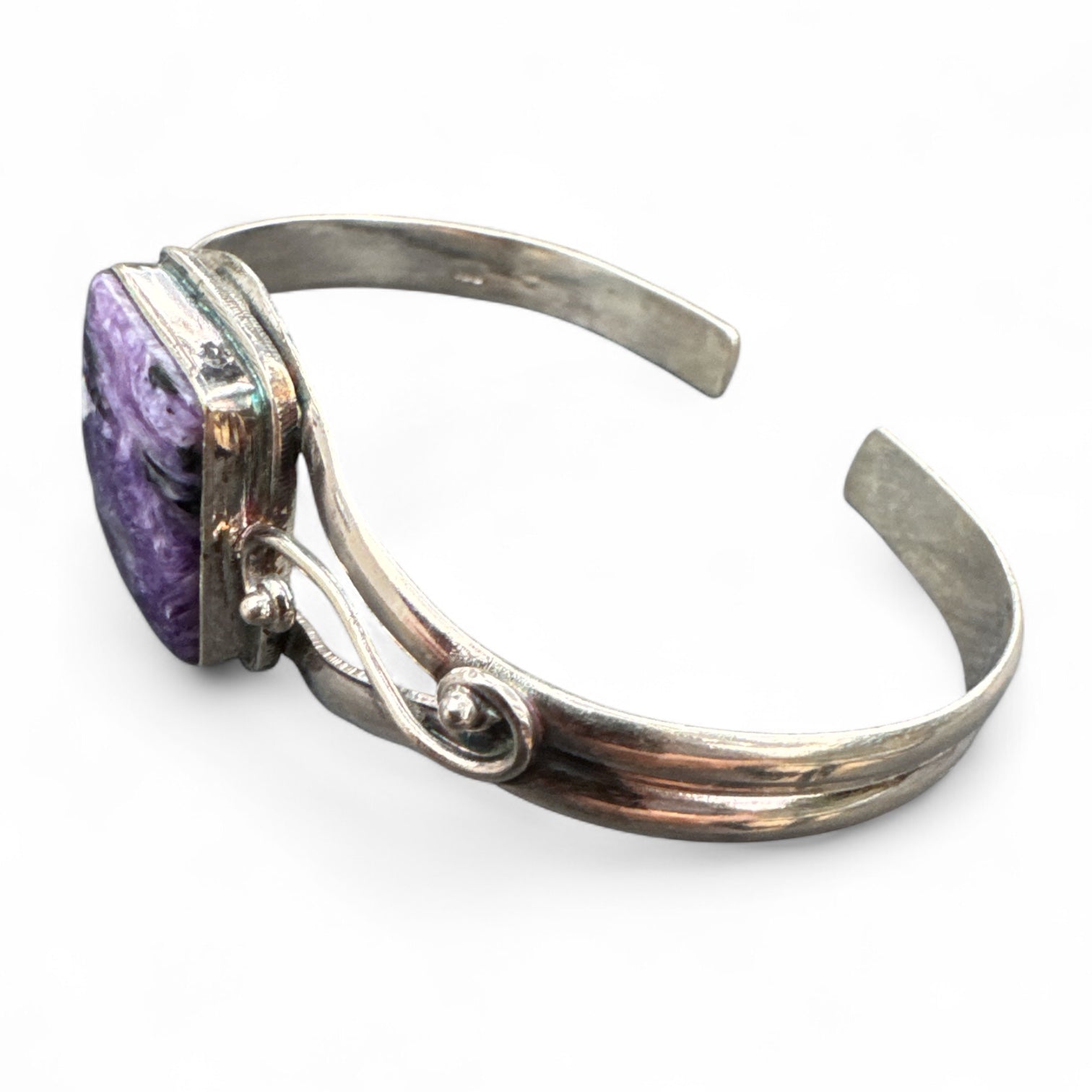 Russian Charoite Solid 925 Sterling Silver Cuff Bracelet