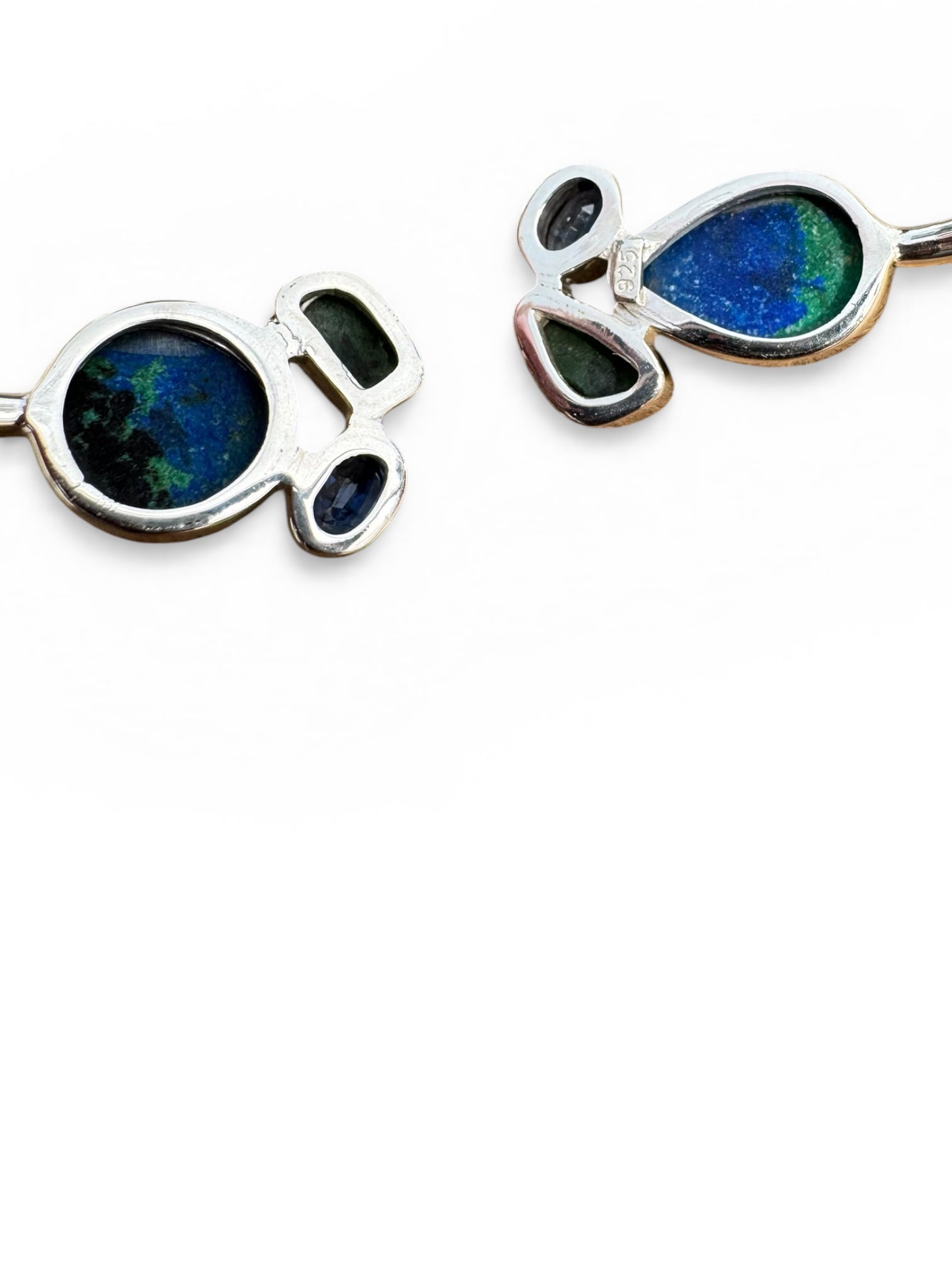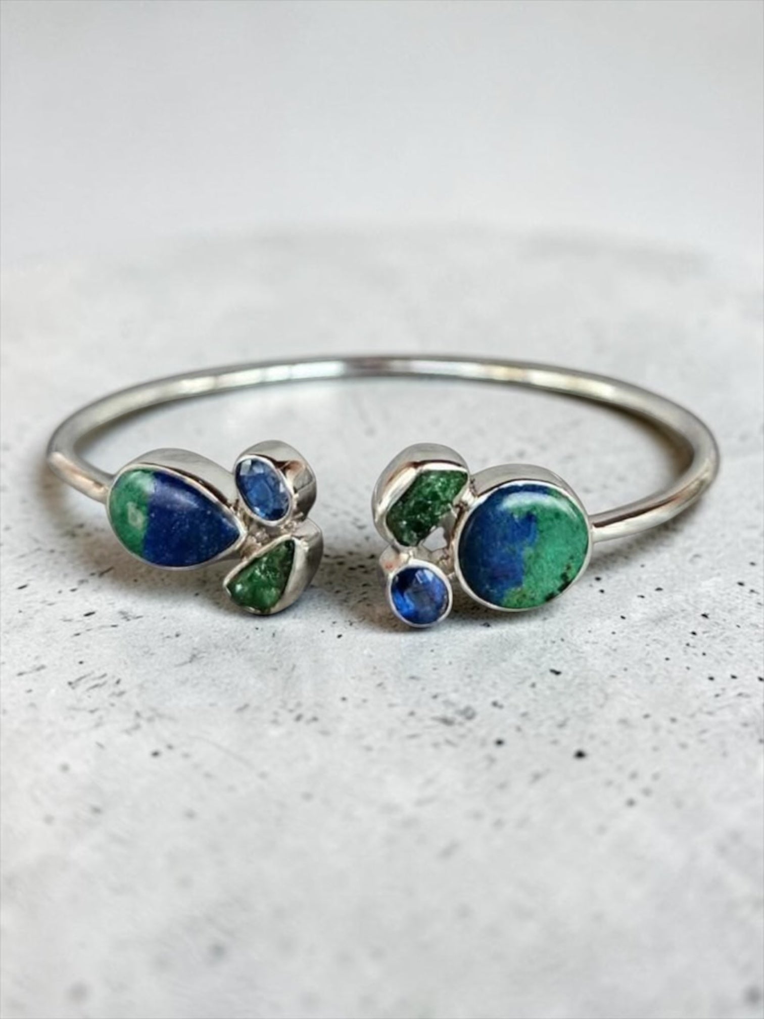 Azurite Malachite & Raw Emerald Solid 925 Sterling Silver Cuff Bracelet