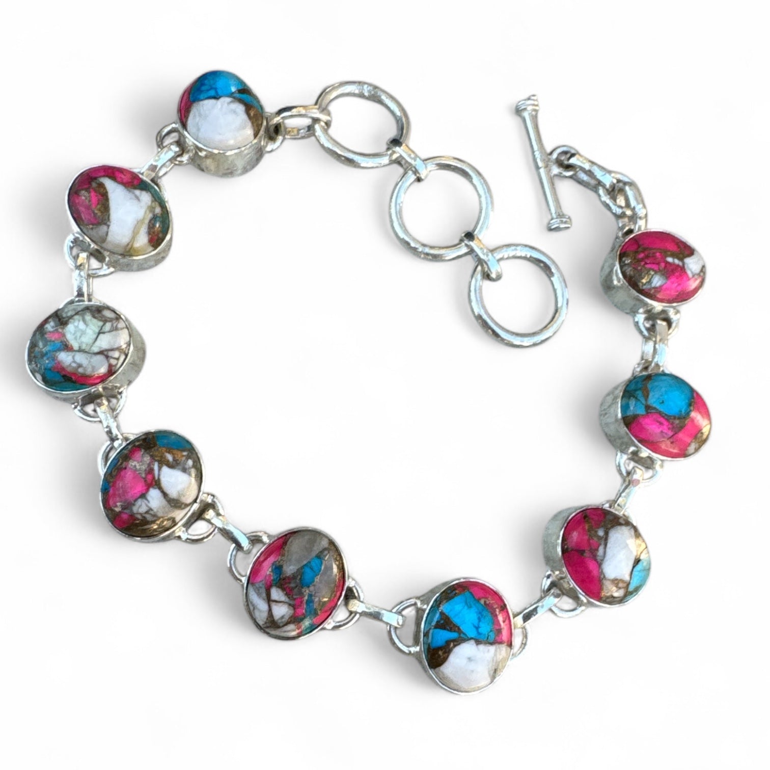 Kingman Cotton Candy Solid 925 Sterling Silver Bracelet