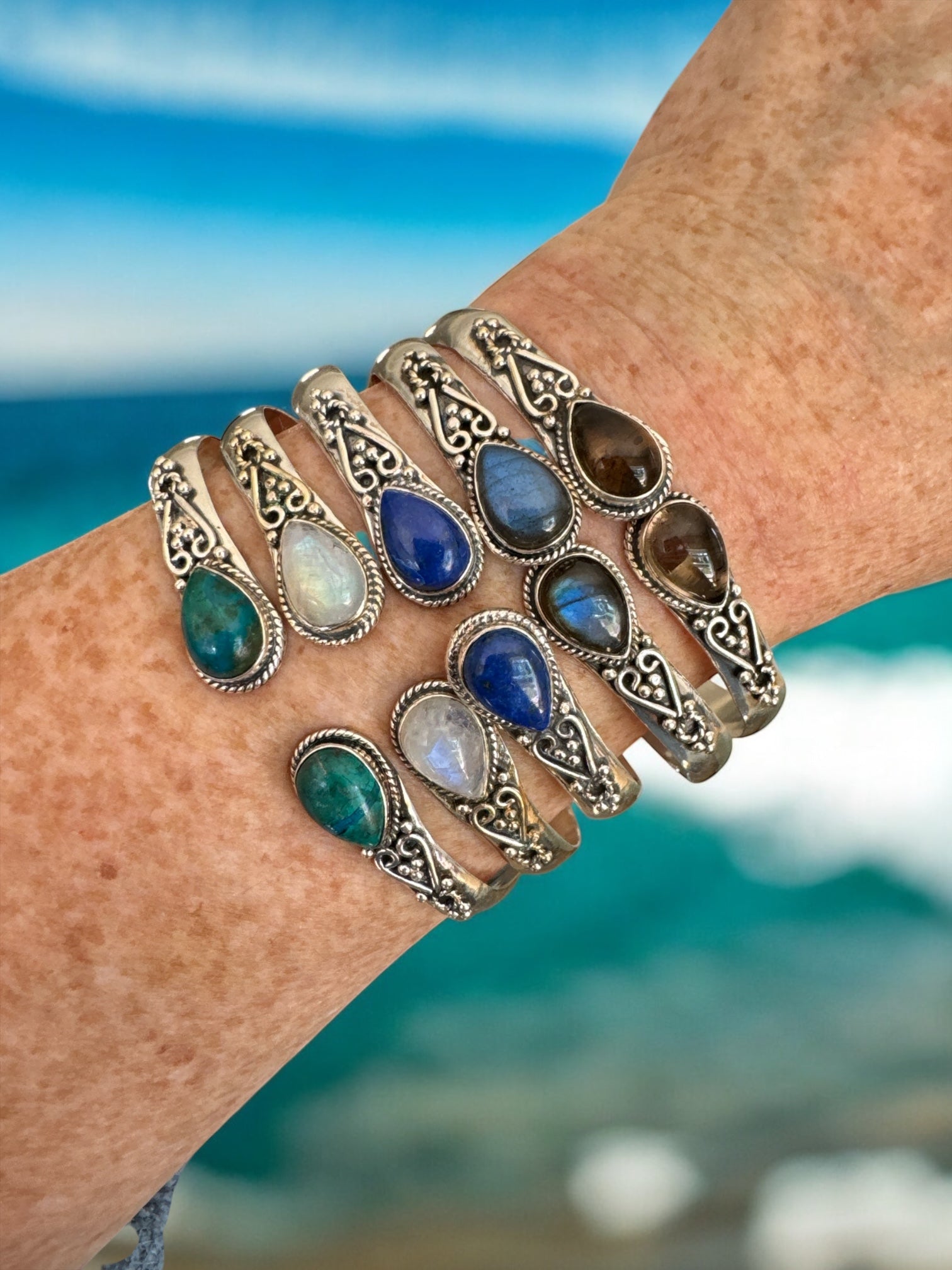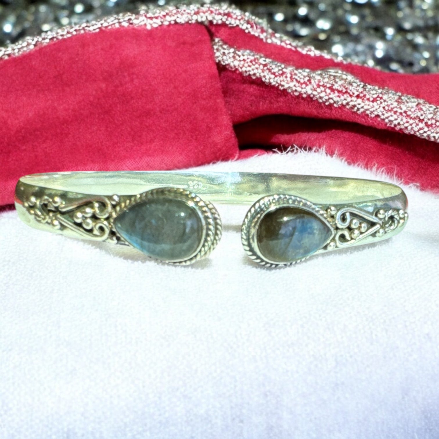 Labradorite Solid 925 Sterling Silver Bangle Bracelet