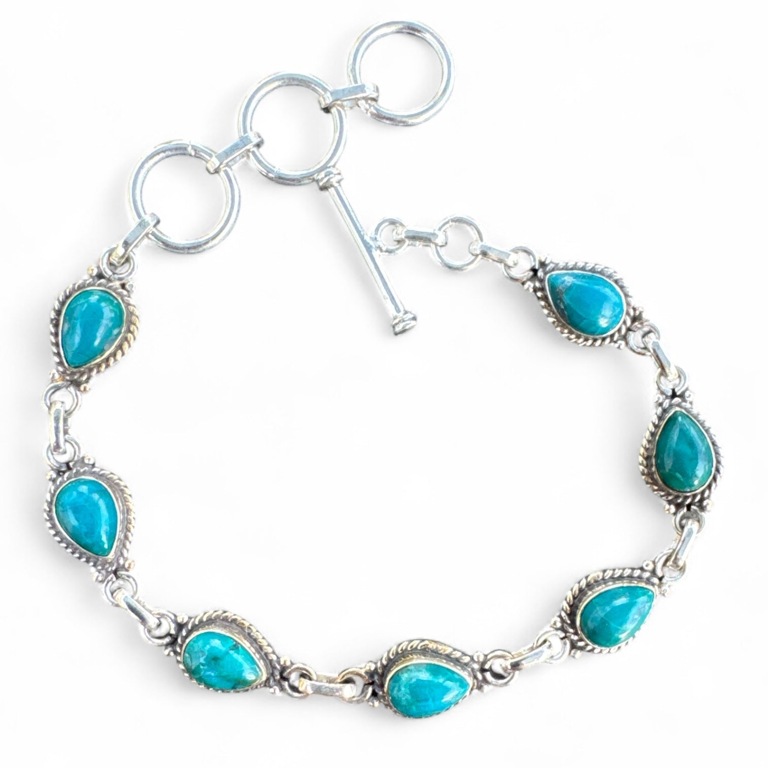 Chrysocolla Solid 925 Sterling Silver Bracelet