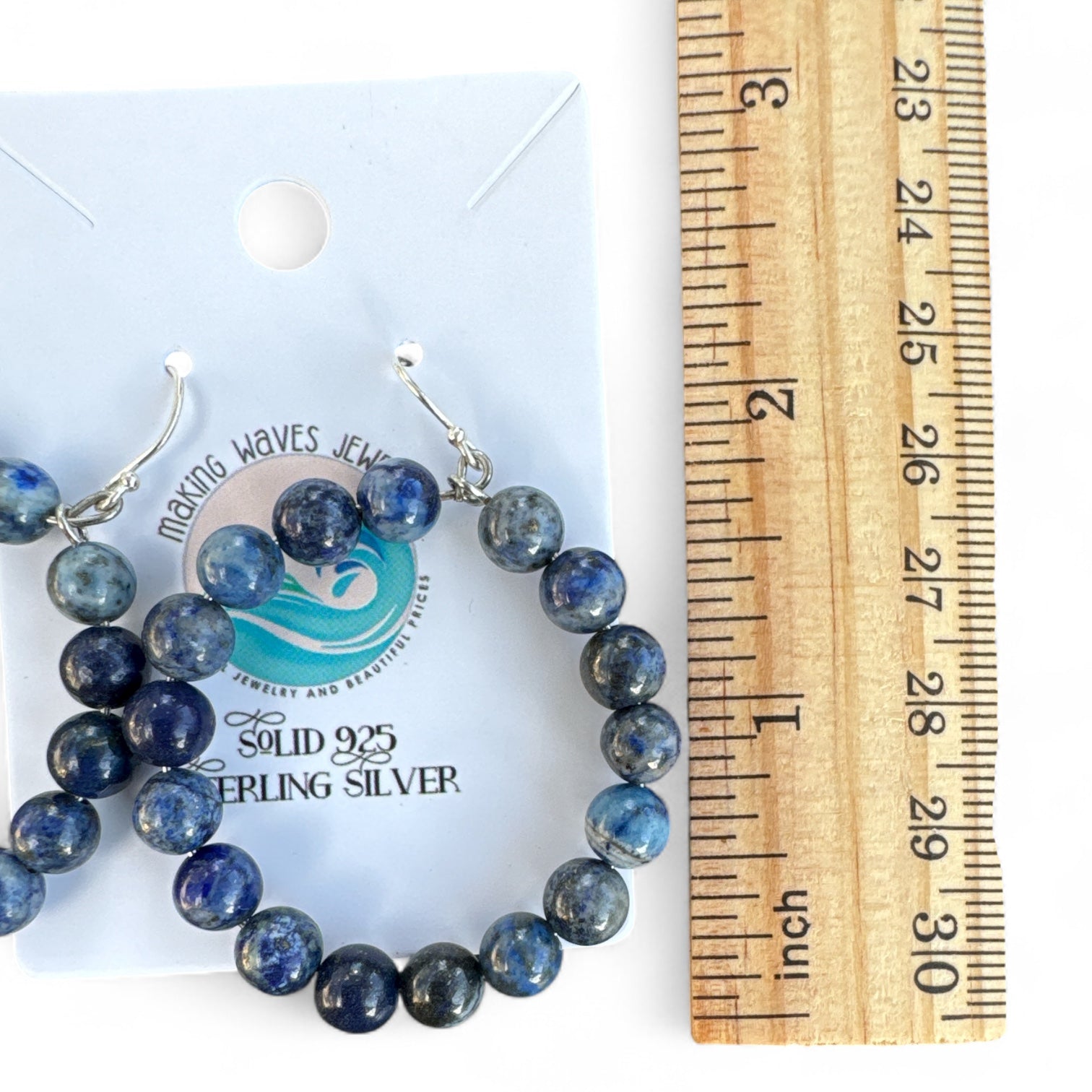 Blue Lapis Lazuli beaded Solid 925 Sterling Silver Earrings