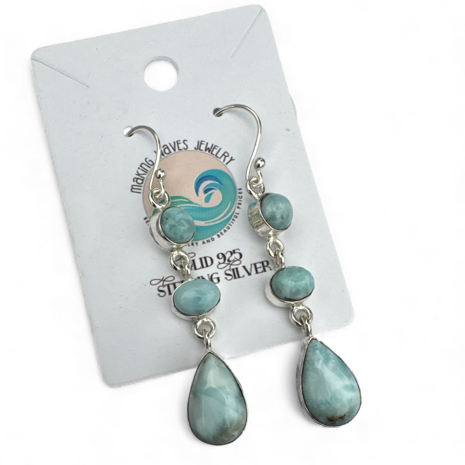 Caribbean Larimar Solid 925 Sterling Silver Earrings