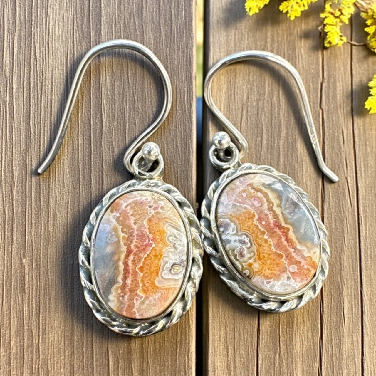 Crazy Lace Agate oval Solid 925 Sterling Silver Earrings