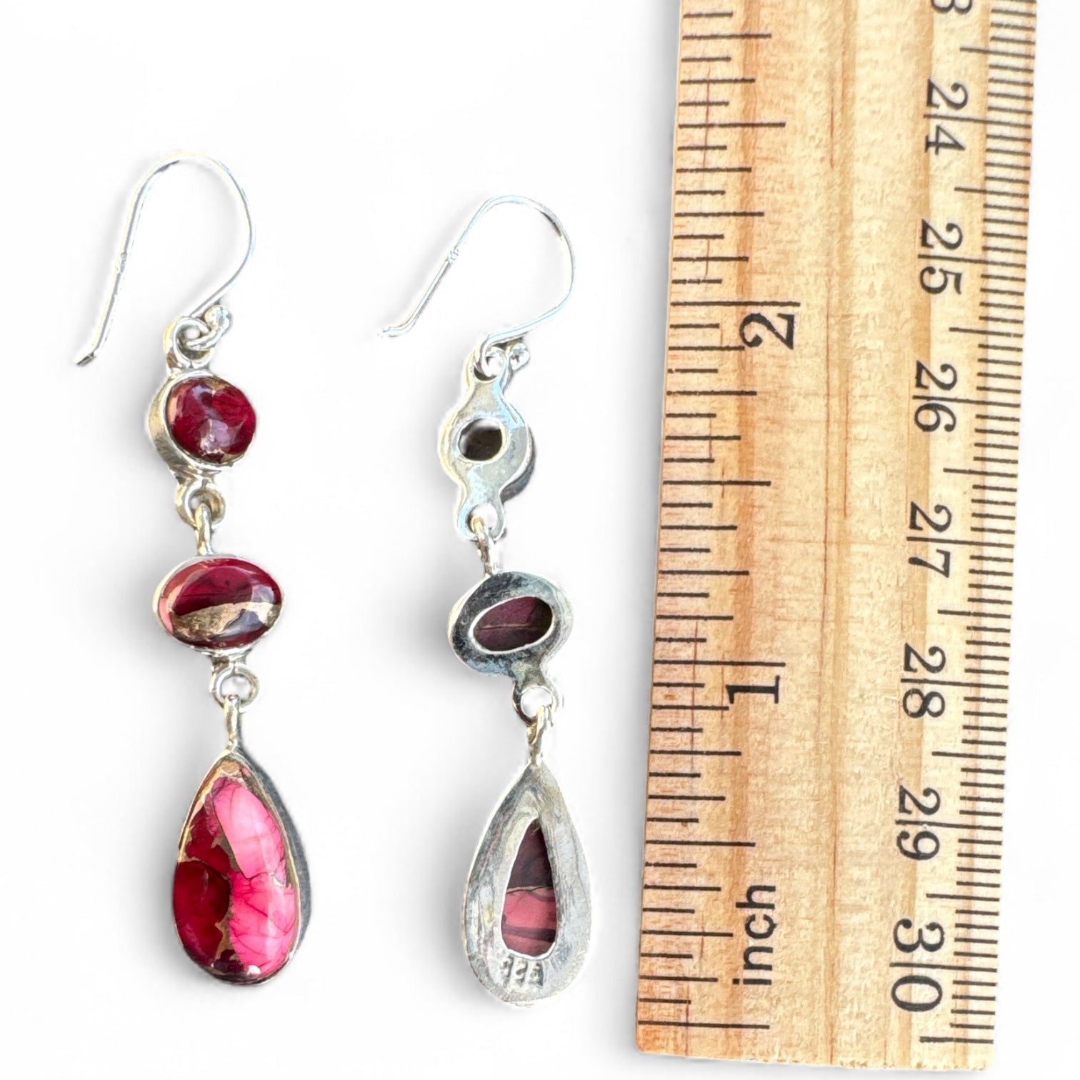 Kingman Red Rose Dahlia Solid 925 Sterling Silver Earrings