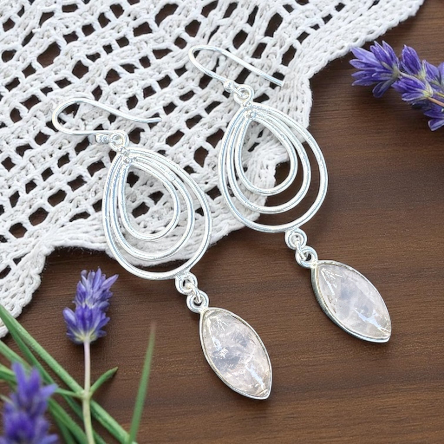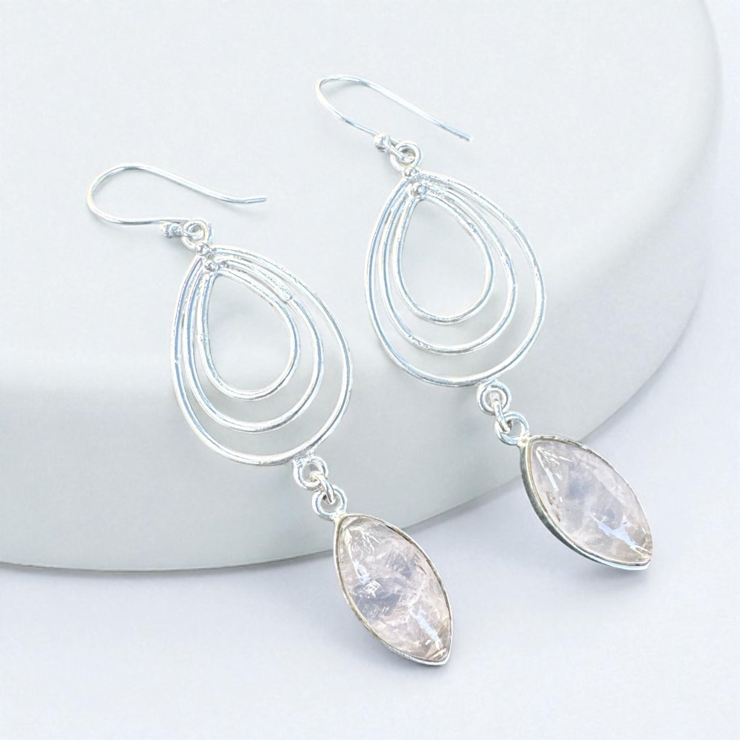 Rose Quartz Solid 925 Sterling Silver Earrings