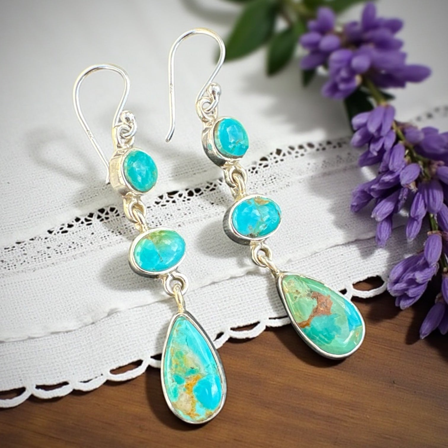 Kingman mine Turquoise Solid 925 Sterling Silver Earrings