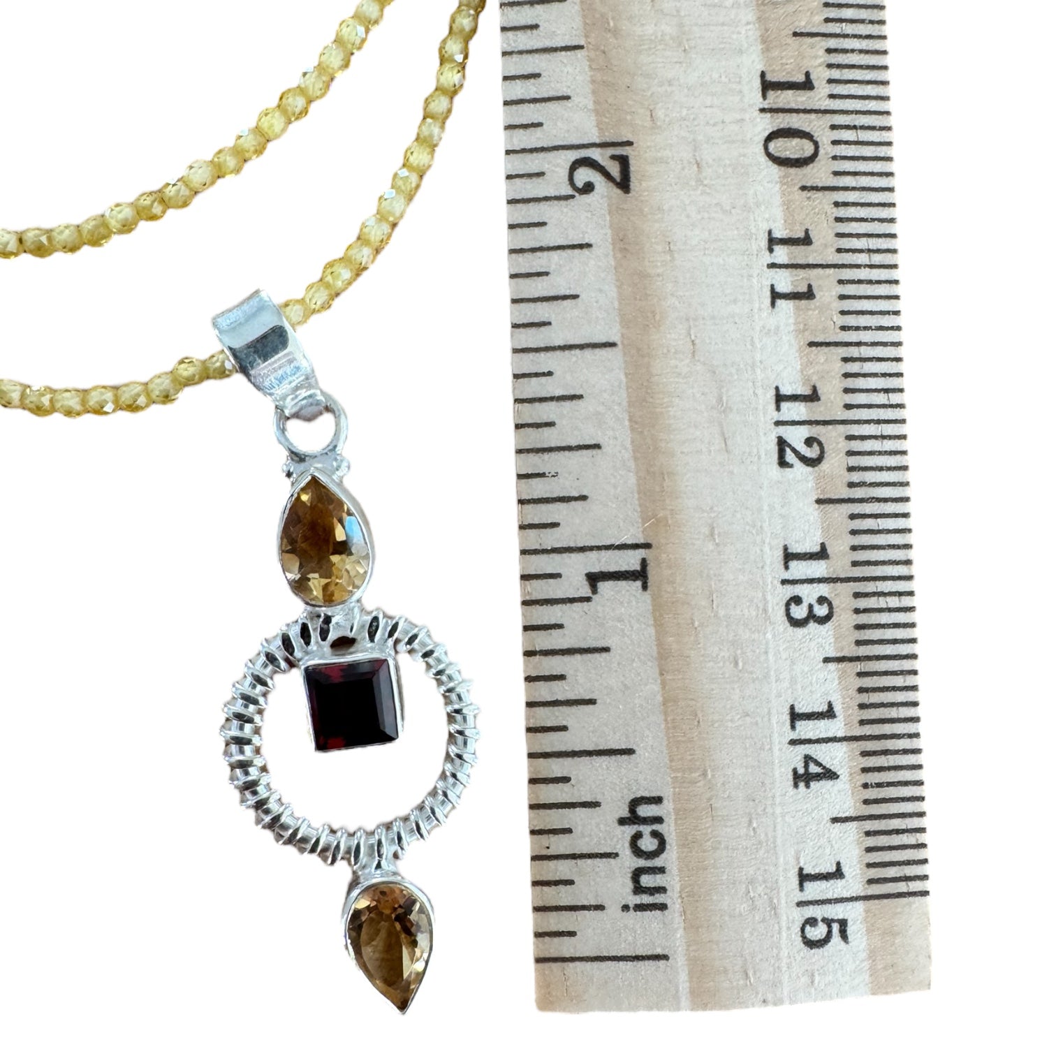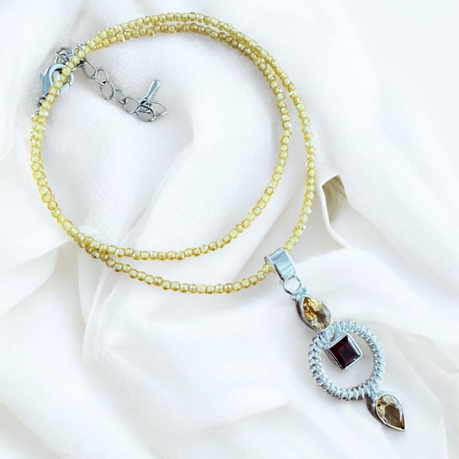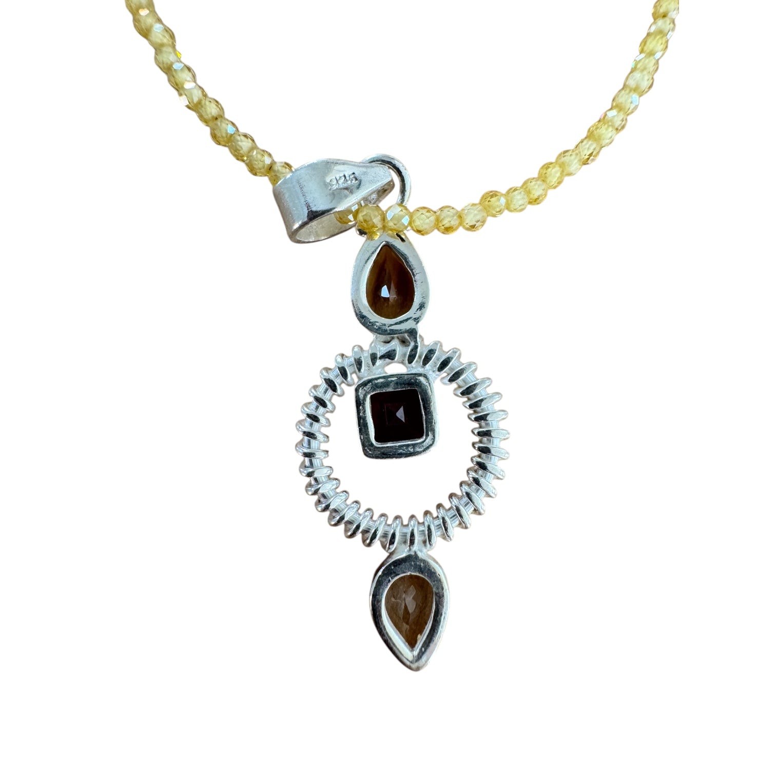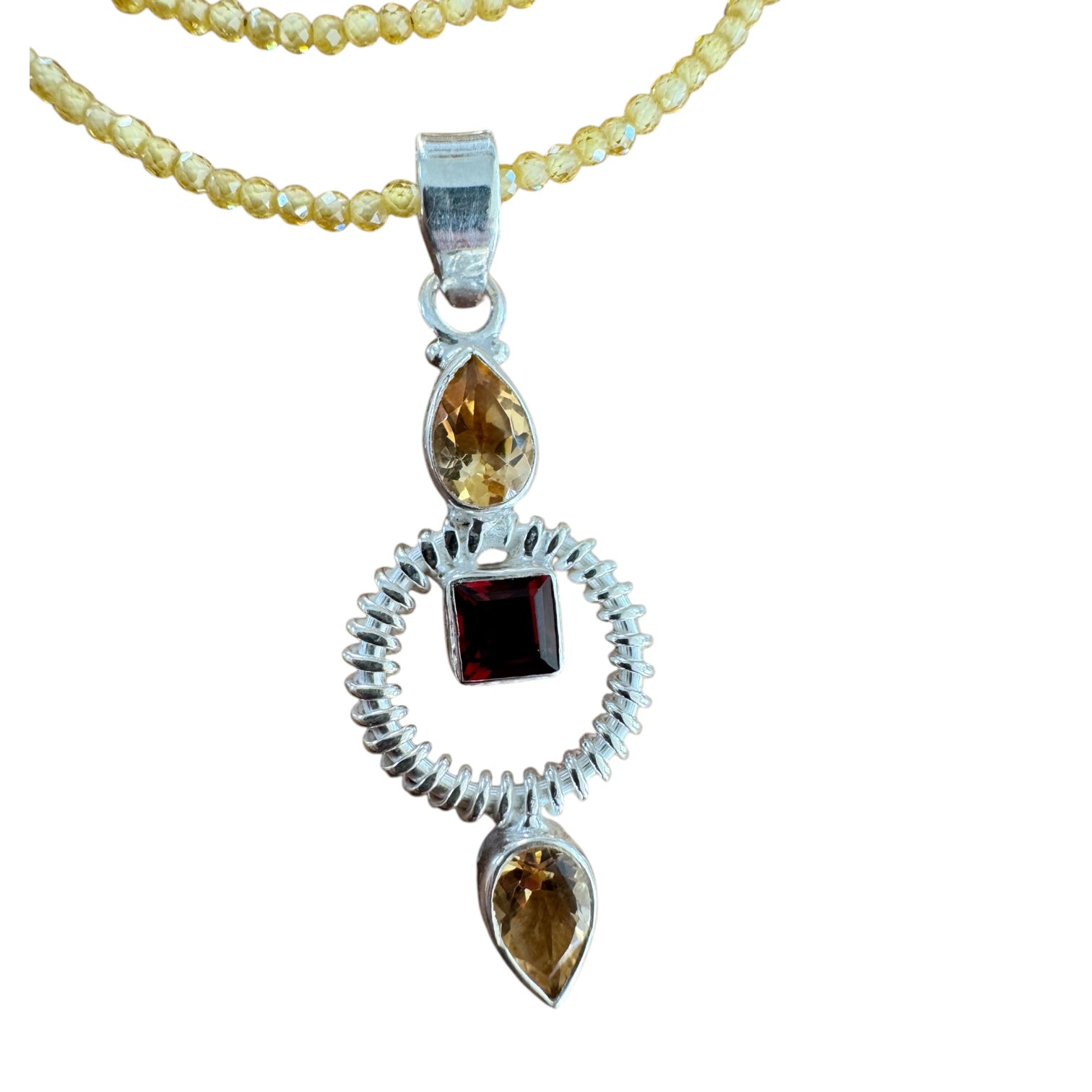Citrine & Garnet Solid 925 Sterling Silver Pendant Necklace