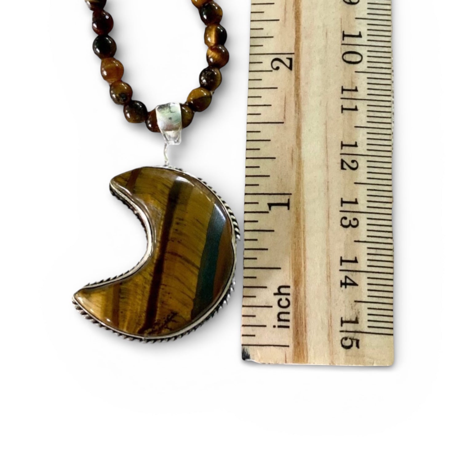 Crescent Moon Tiger Eye Solid 925 Sterling Silver Pendant Necklace
