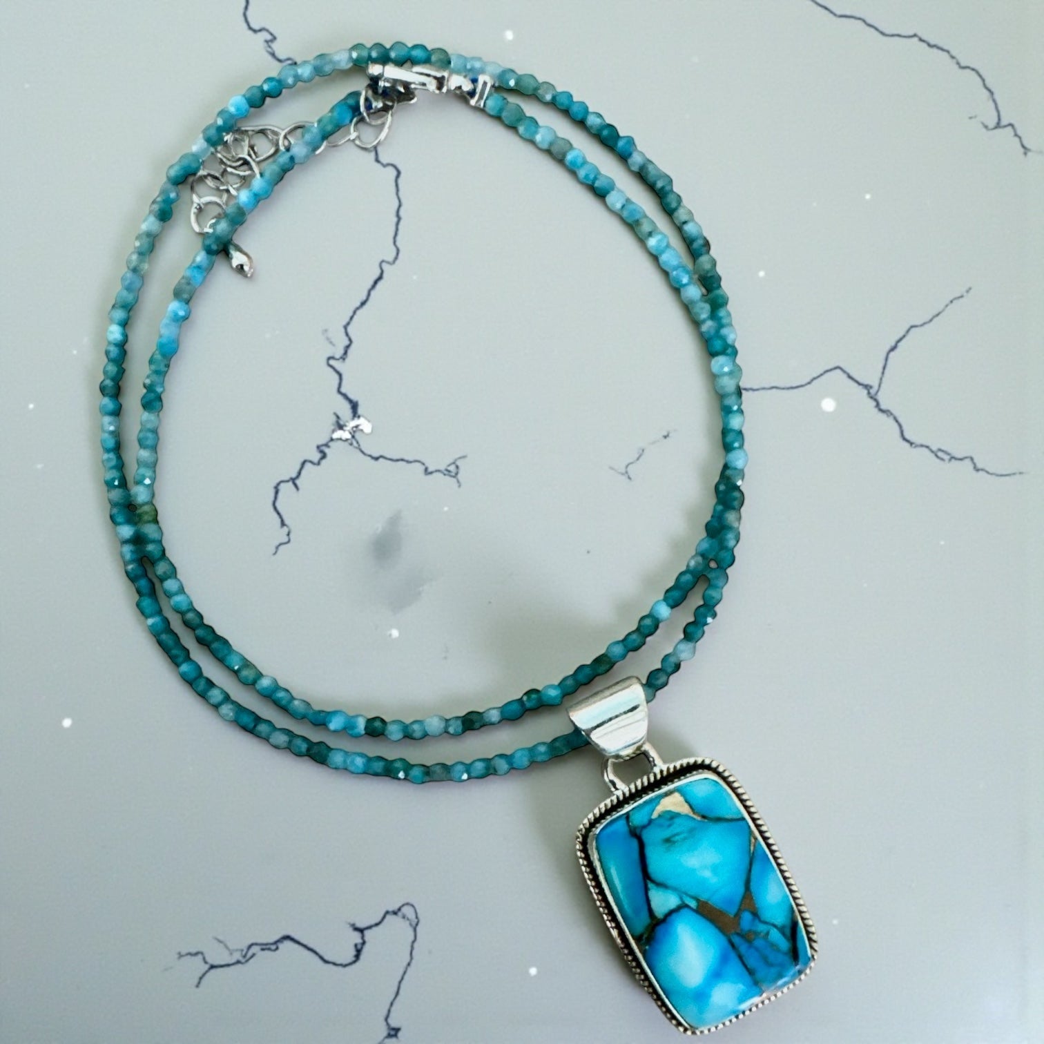 Kingman Blue Ice Dahlia Solid 925 Sterling Silver Pendant Necklace