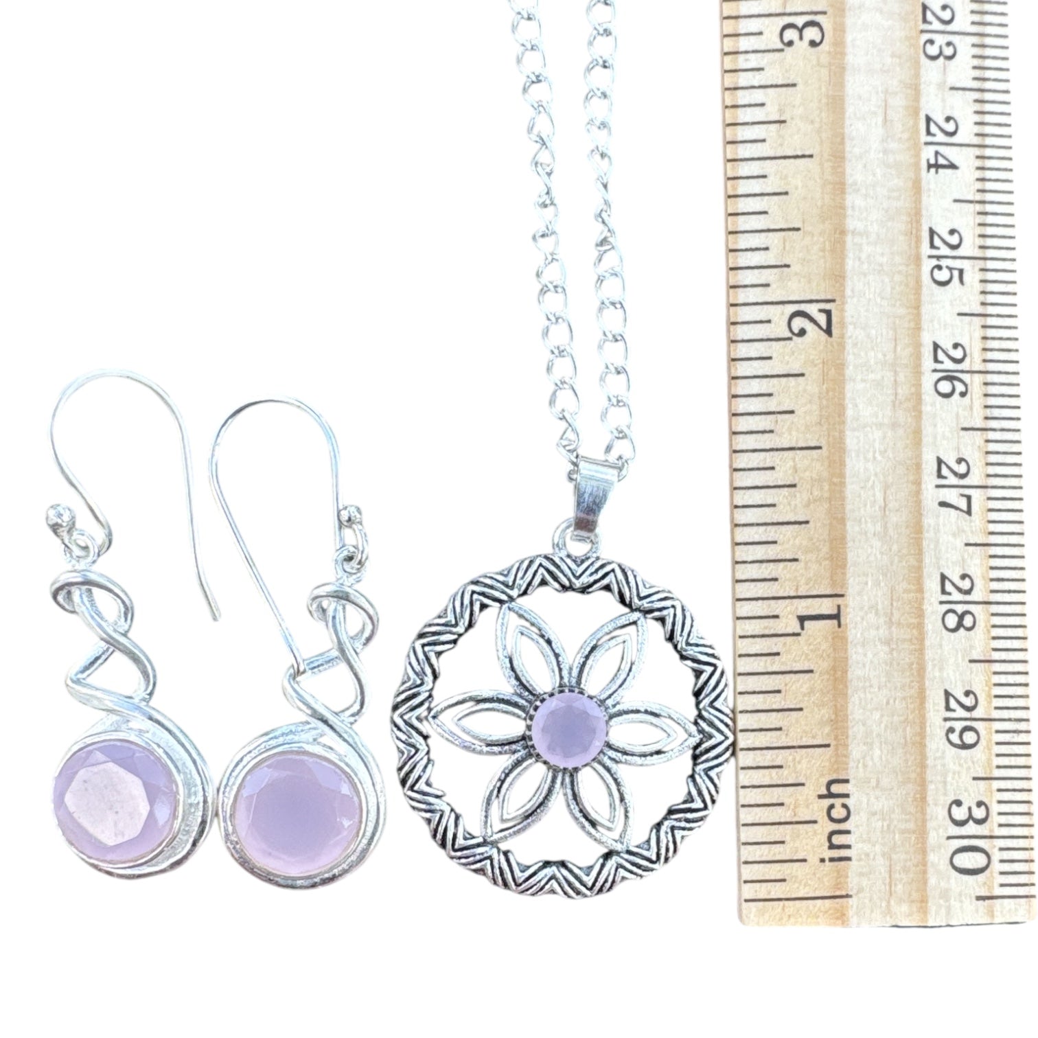 Pink Chalcedony Solid 925 Sterling Silver Necklace Earrings Set