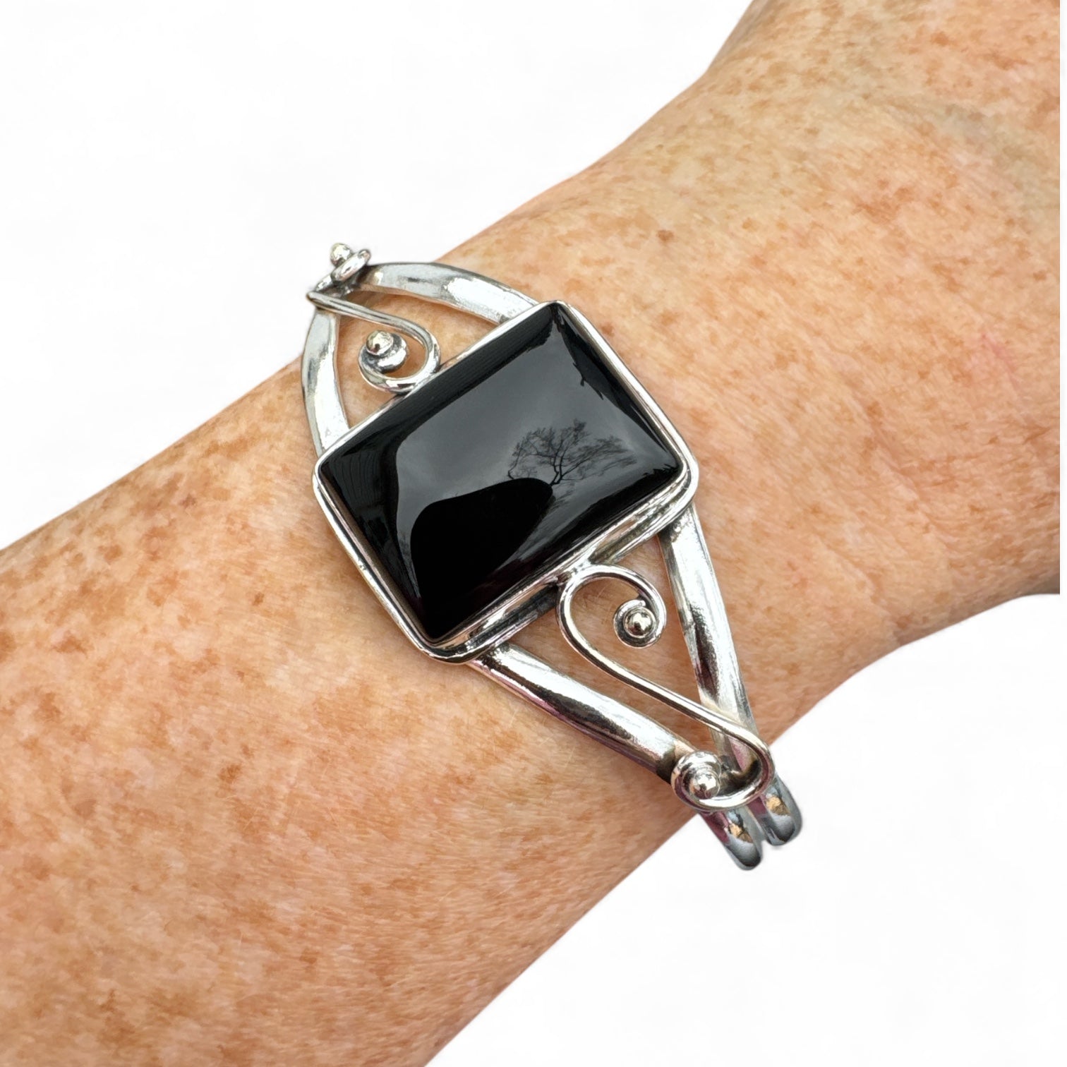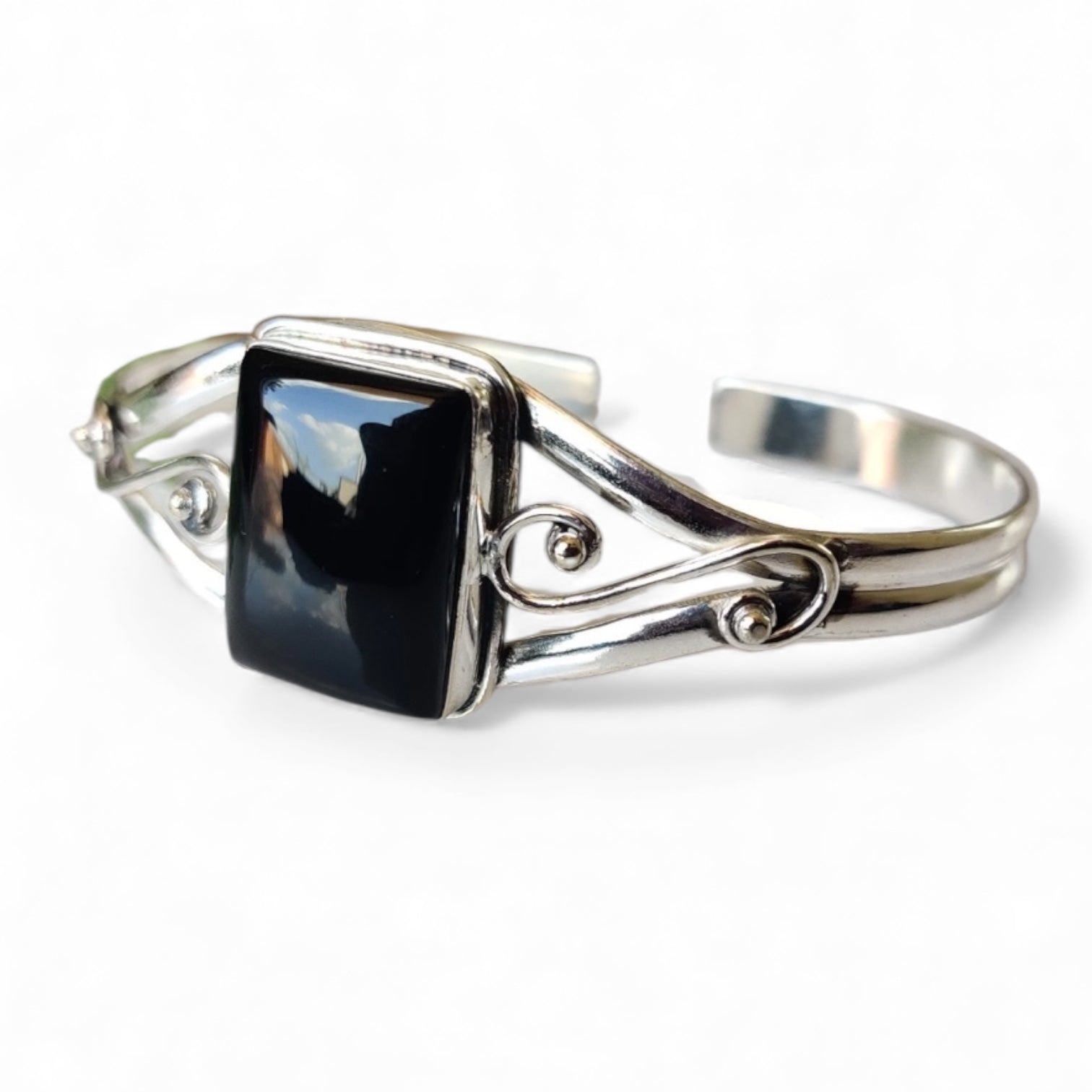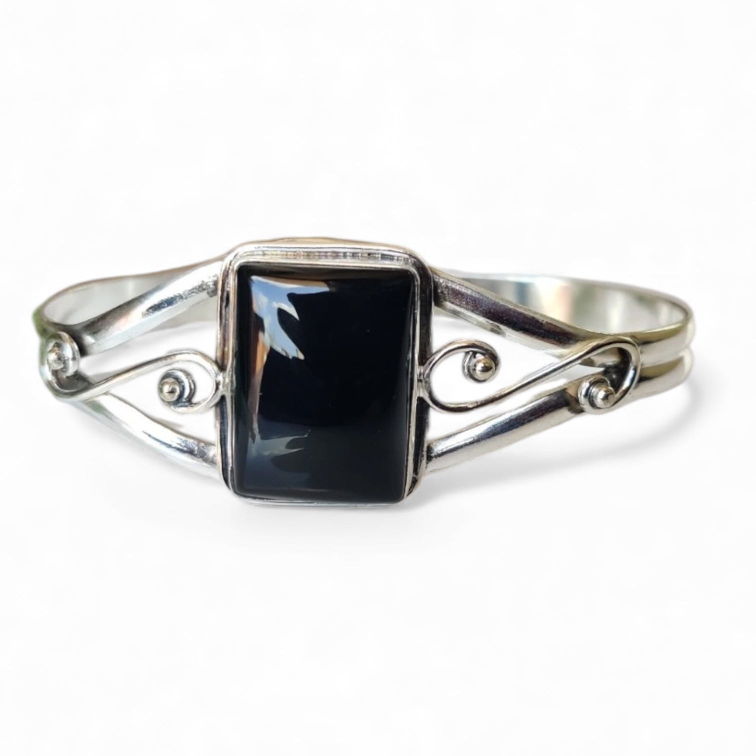 Black Onyx Solid 925 Sterling Silver Cuff Bracelet