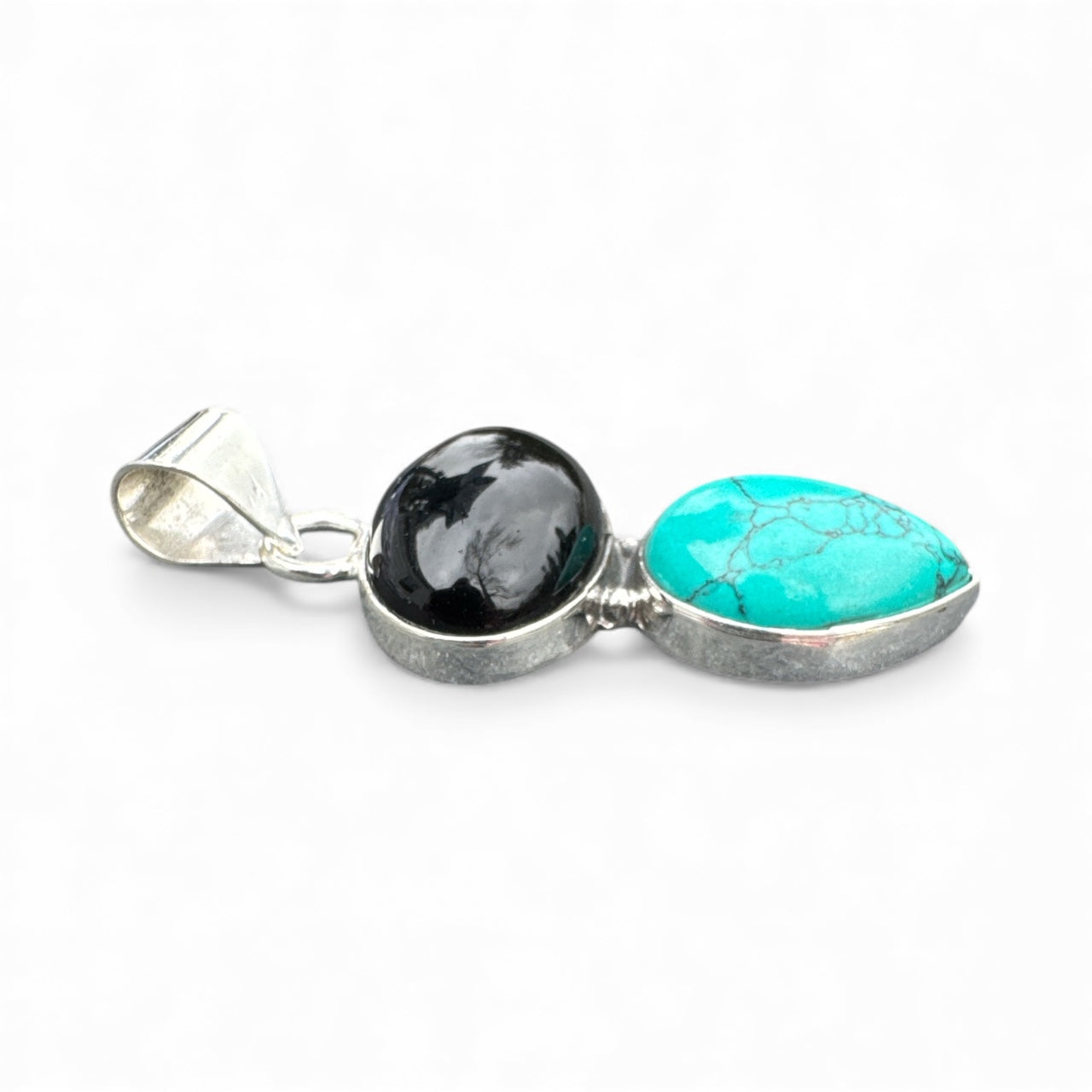 Black Onyx & Turquoise Solid 925 Sterling Silver Pendant