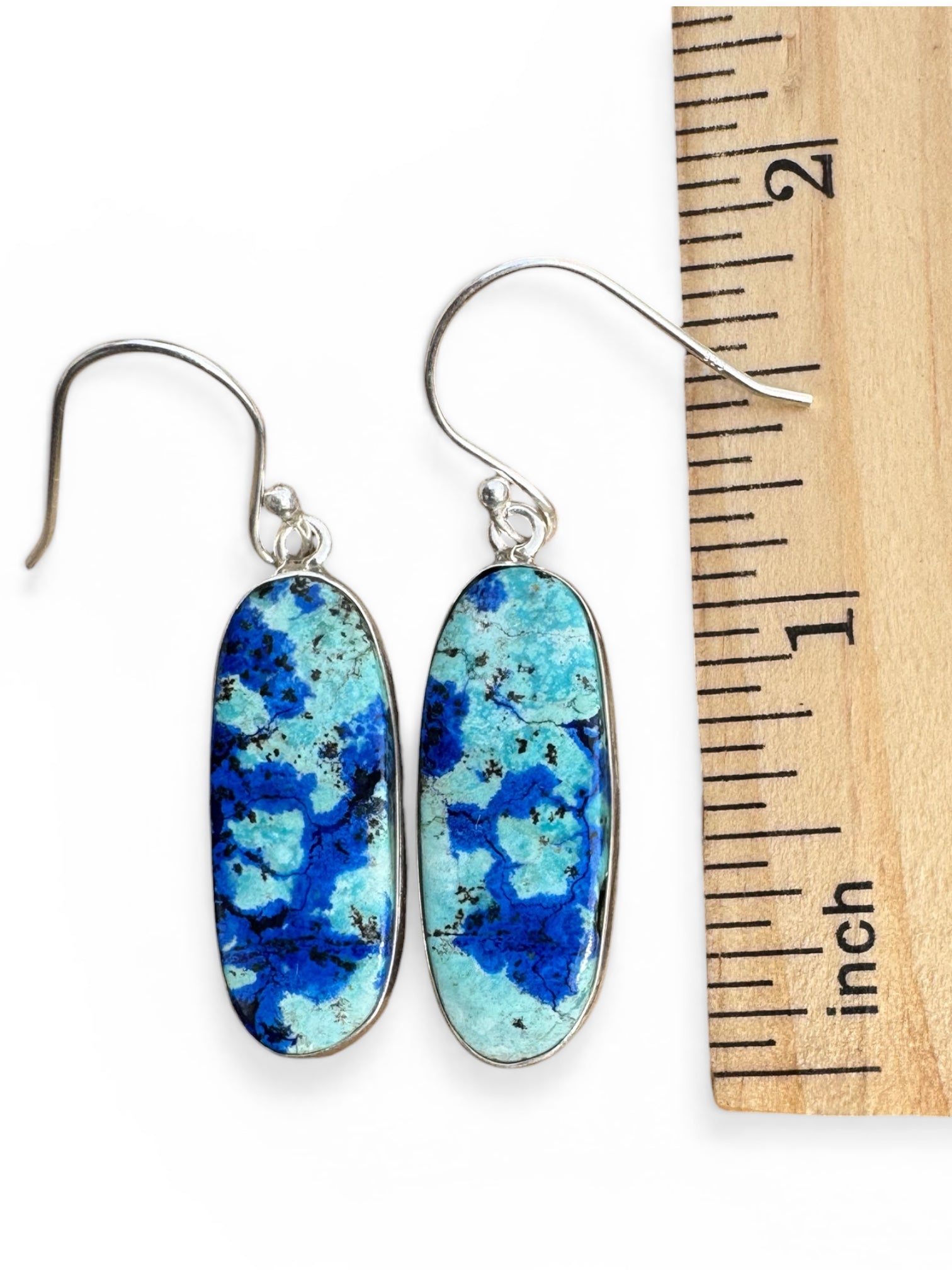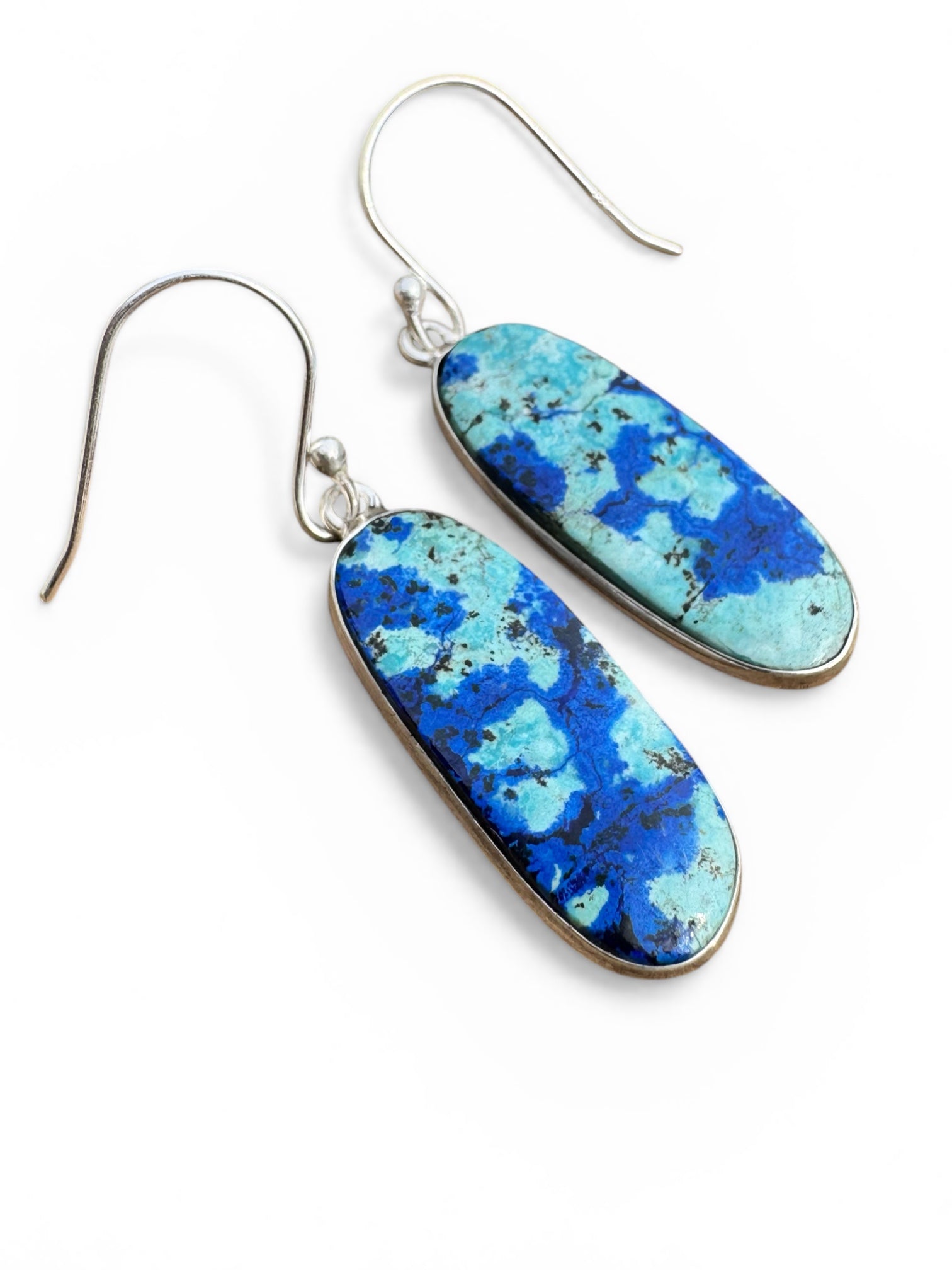 Blue Bird Azurite Solid 925 Sterling Silver Earrings