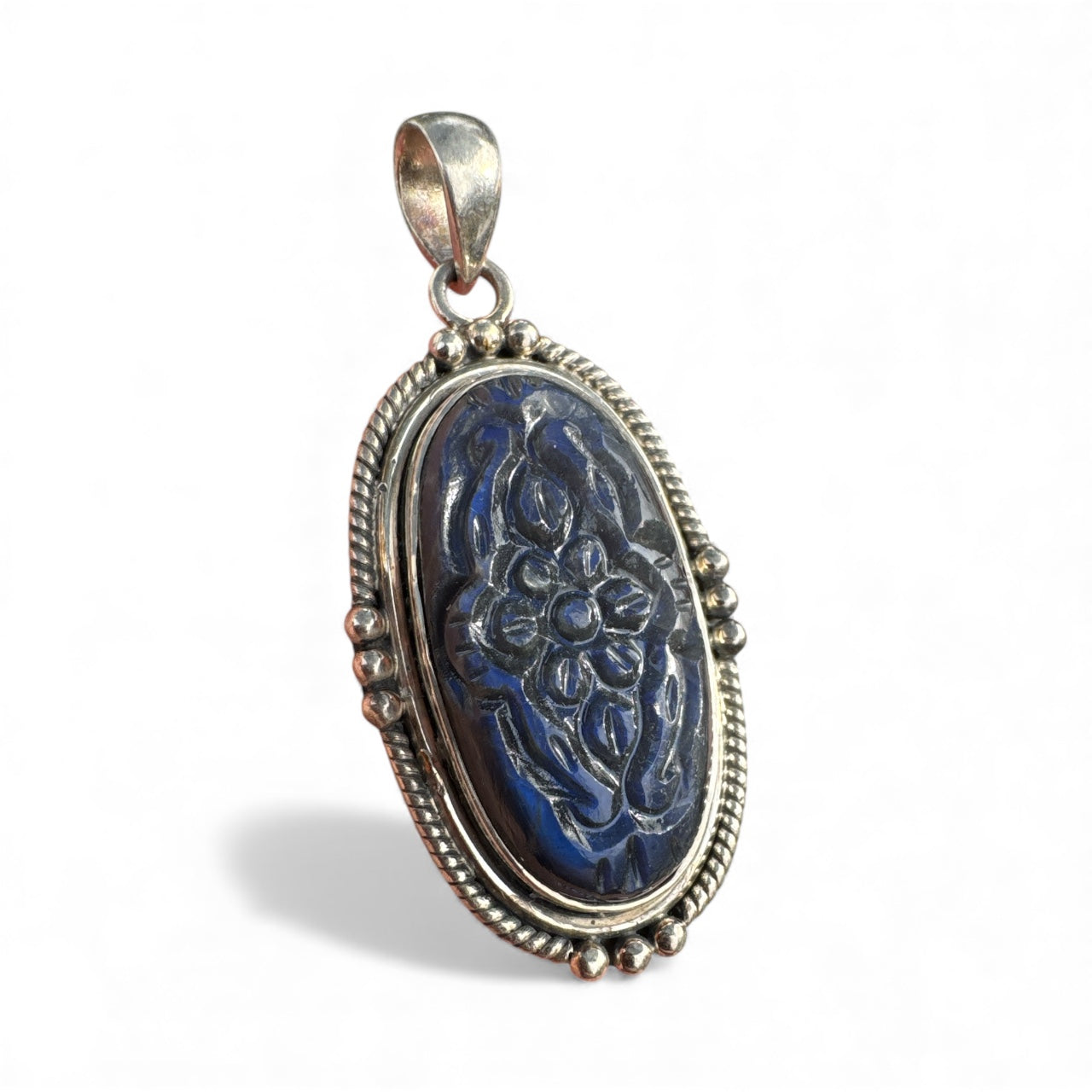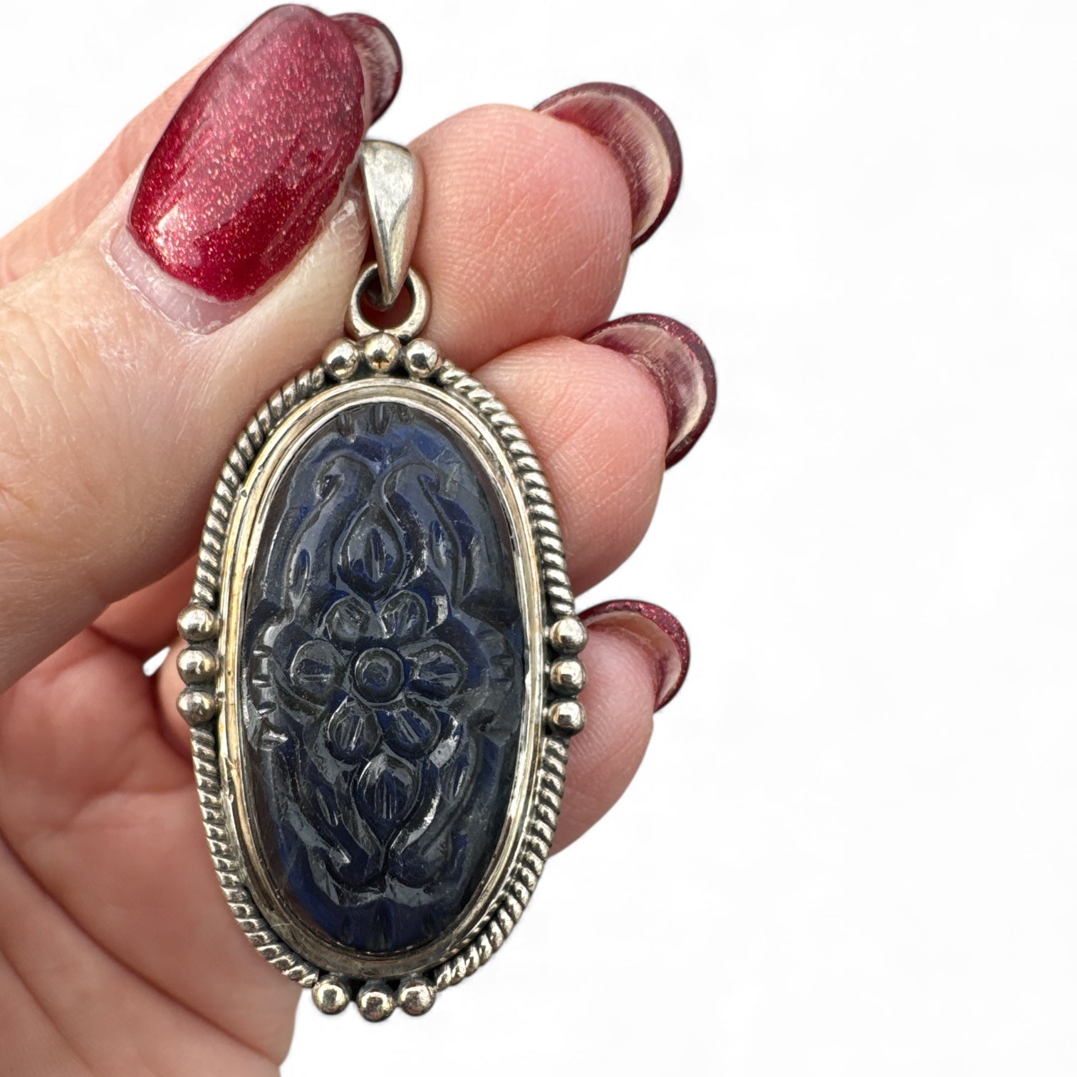 Carved Labradorite Solid 925 Sterling Silver Pendant