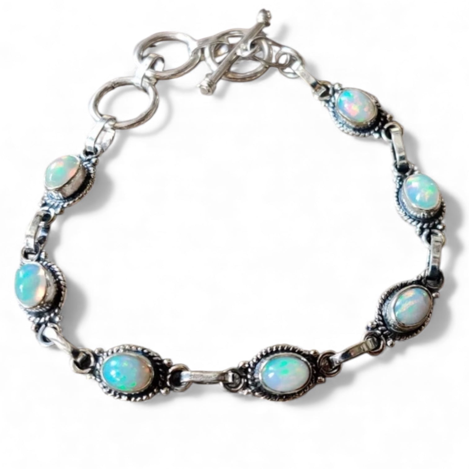 Ethiopian Opal Solid 925 Sterling Silver Bracelet