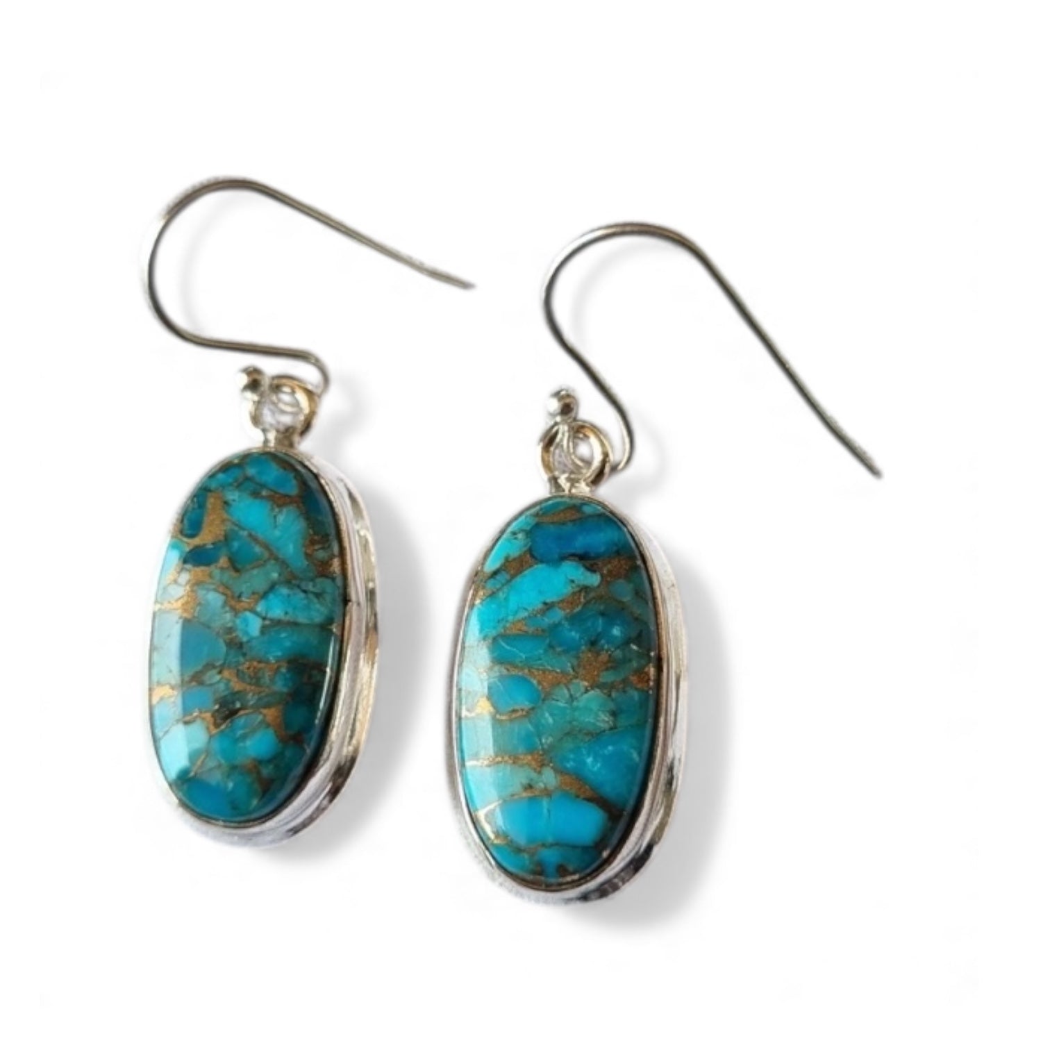 Kingman Blue Copper Turquoise Solid 925 Sterling Silver Earrings