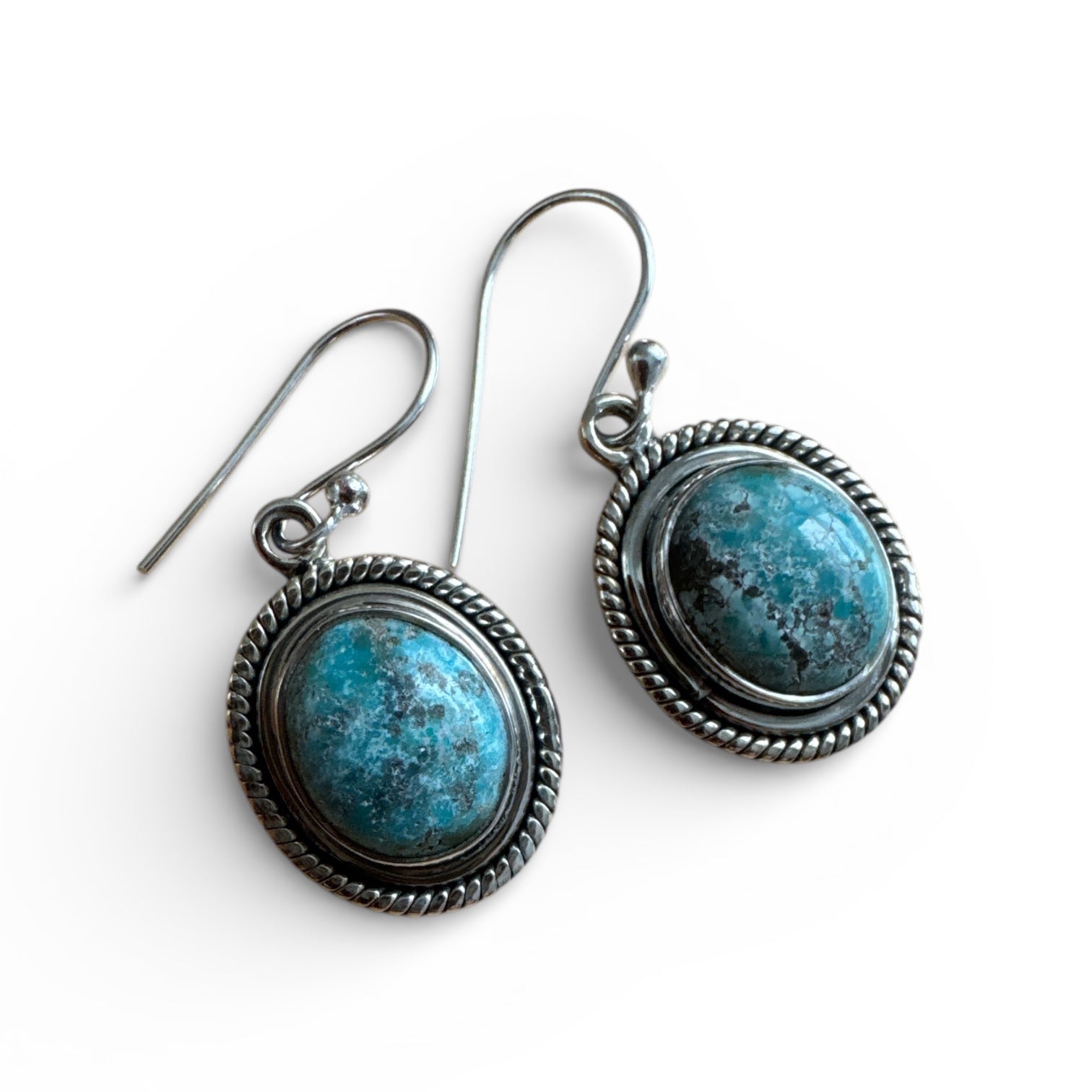 Number 8 Mine Turquoise Solid 925 Sterling Silver Earrings