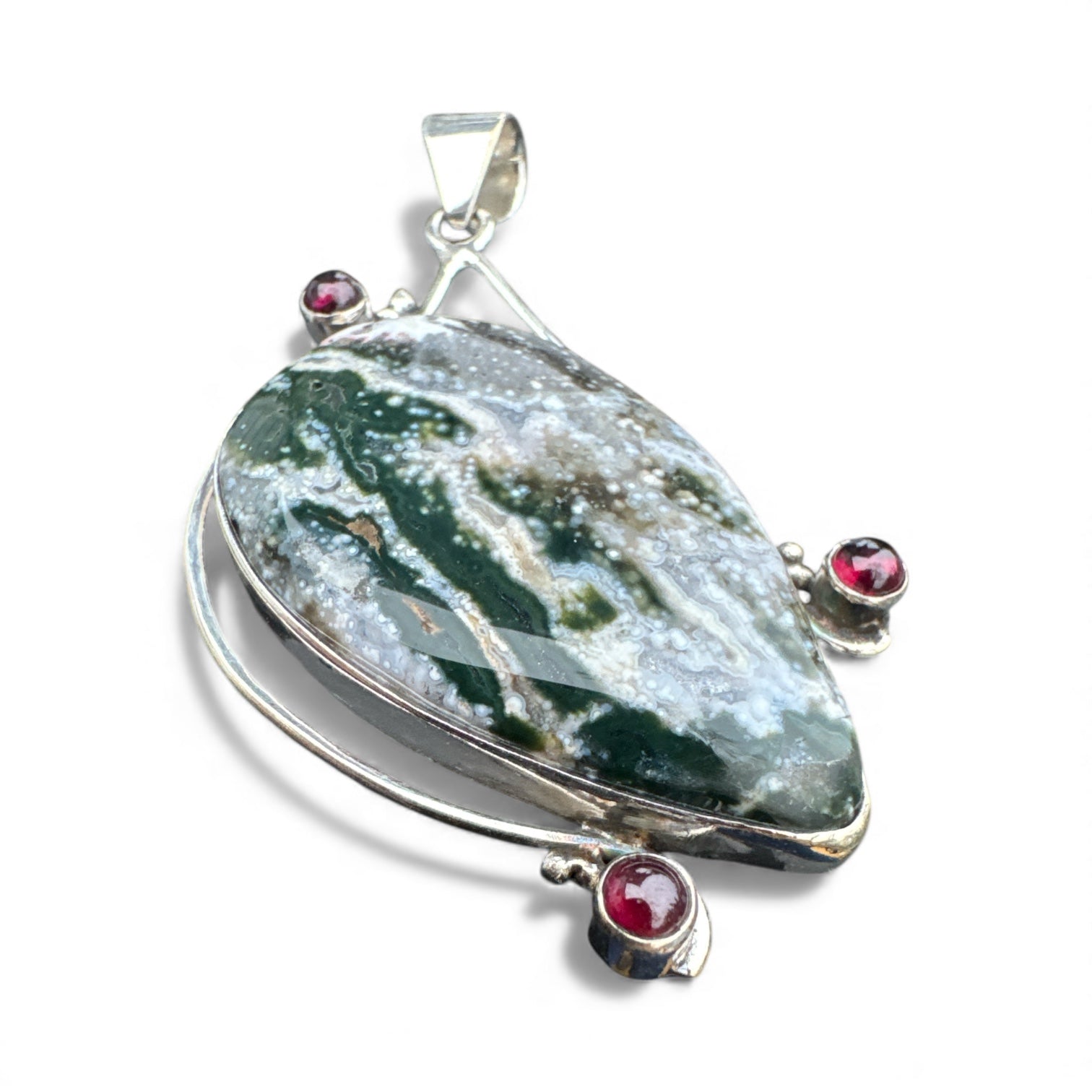 Ocean Jasper & Garnet Solid 925 Sterling Silver Pendant