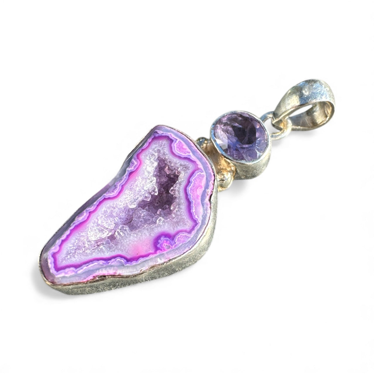 Purple Solar Quartz & Amethyst Solid 925 Sterling Silver Pendant