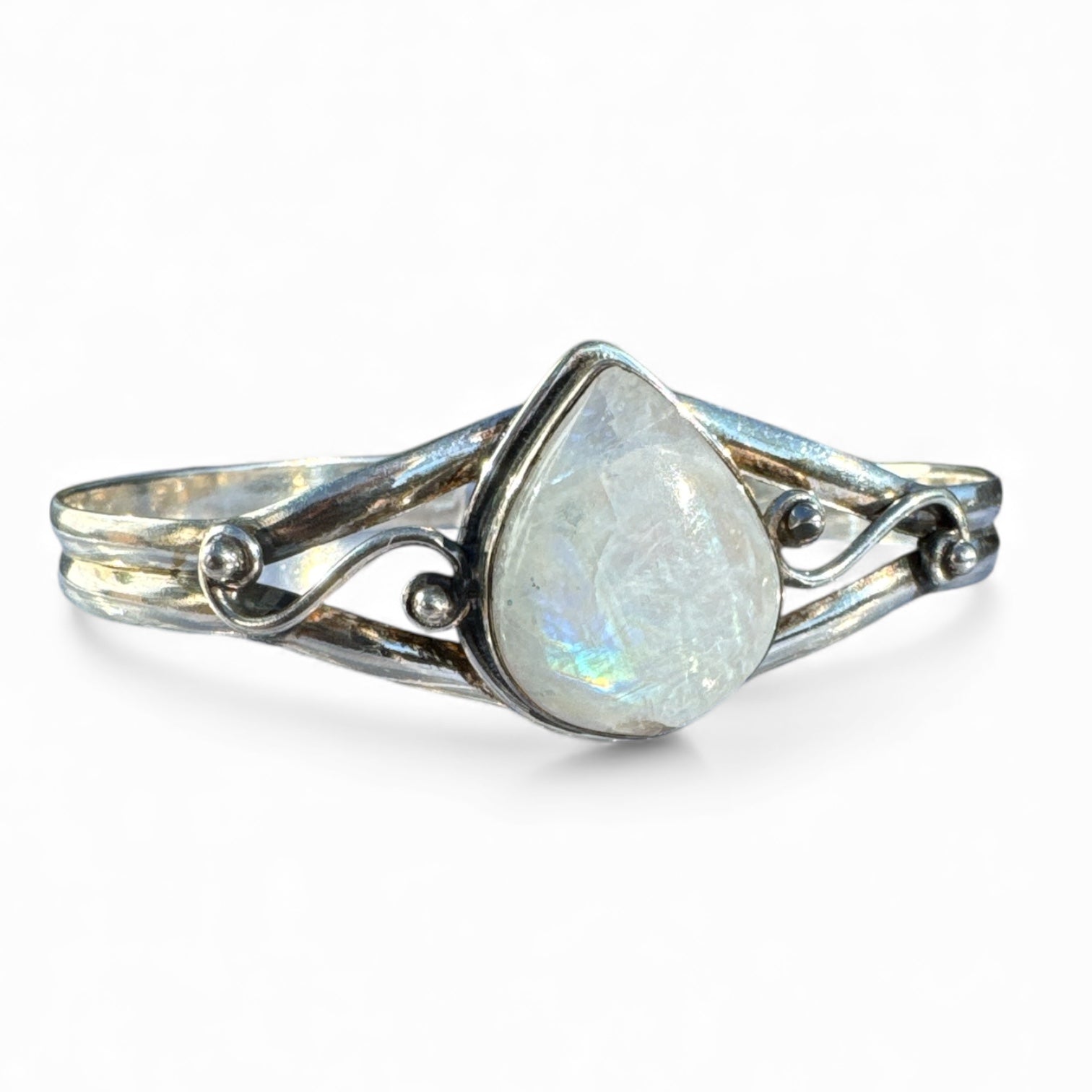 Rainbow Moonstone Solid 925 Sterling Silver Cuff Bracelet