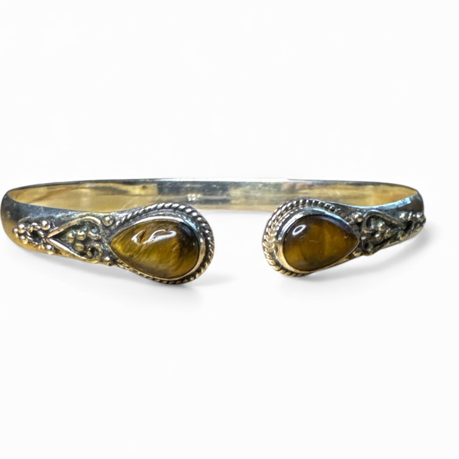 Tiger Eye Solid 925 Sterling Silver Bangle Bracelet