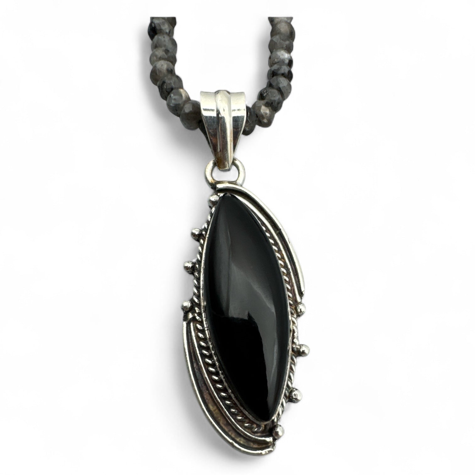 Black Onyx & Labradorite Solid 925 Sterling Silver Pendant Necklace