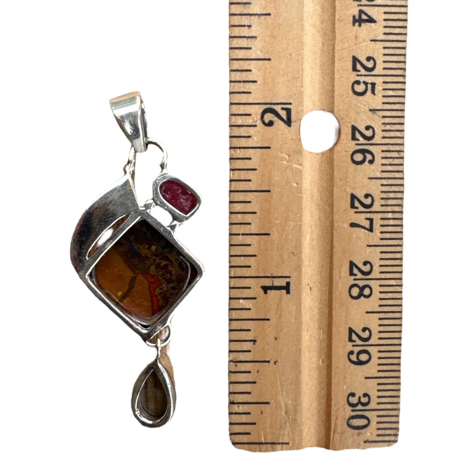 Cady Mountain Agate Tourmaline & Tiger Eye Solid 925 Sterling Silver Pendant