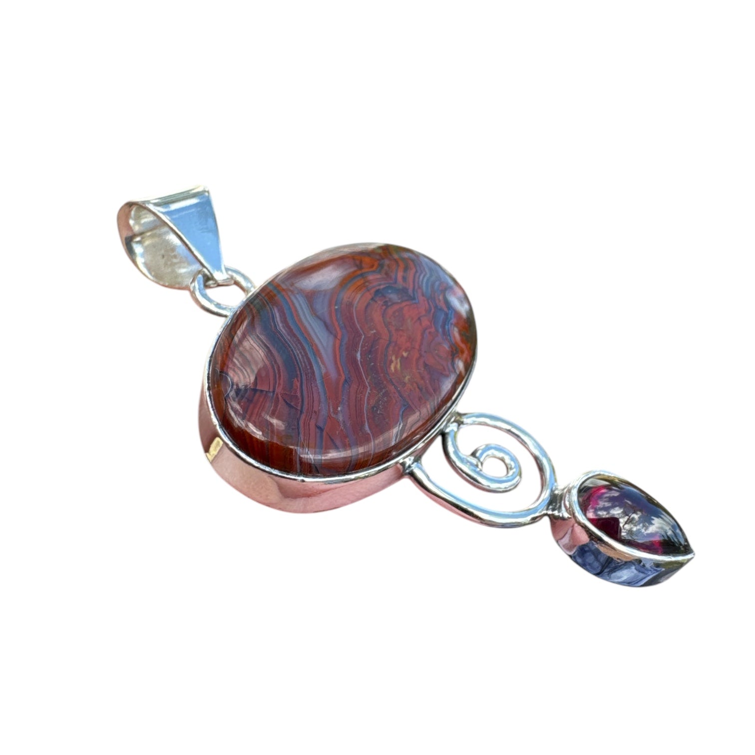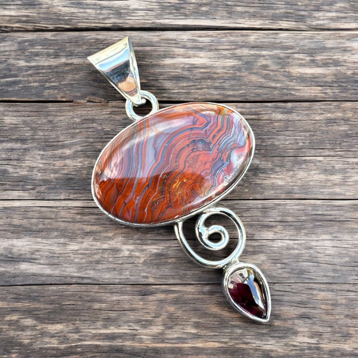 Crazy Lace Agate & Garnet Solid 925 Sterling Silver Pendant