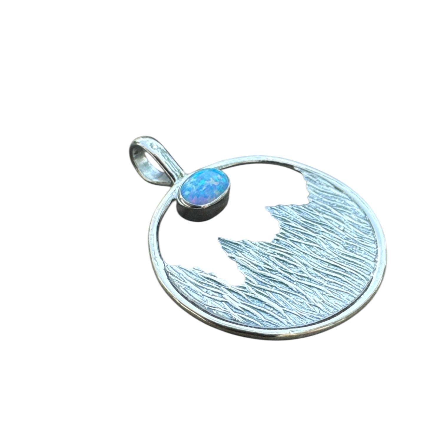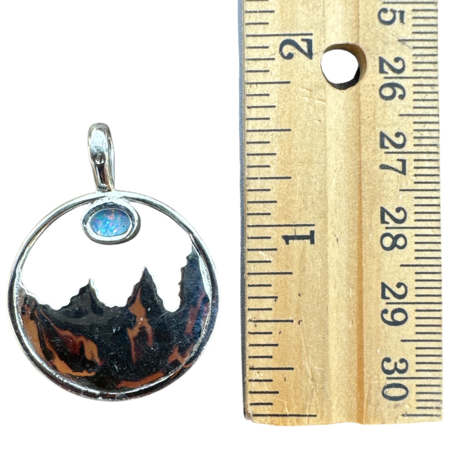 Fire Opal & Textured Mountain Design Pendant – Solid 925 Sterling Silver