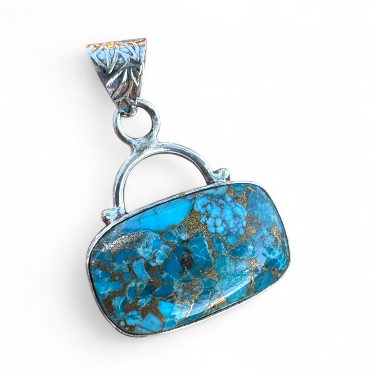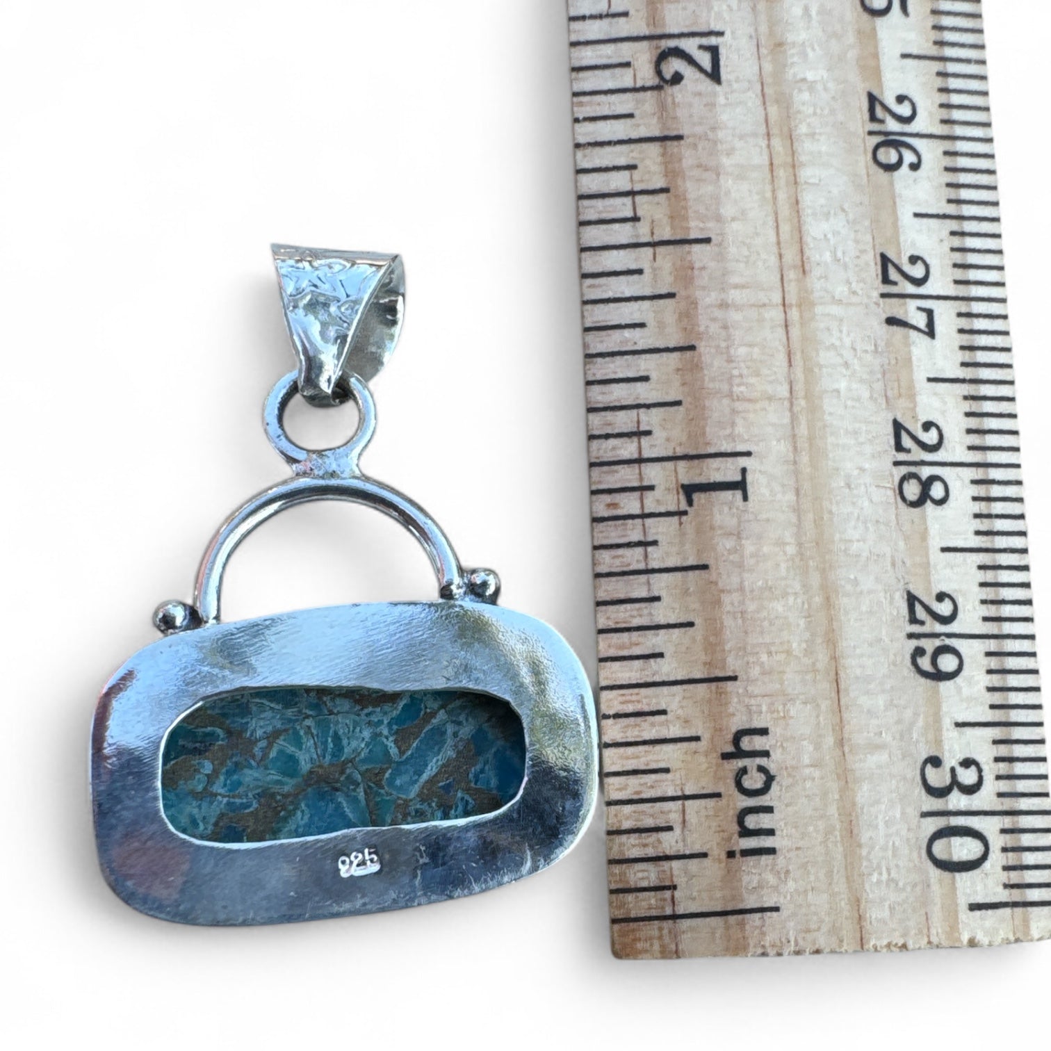 Kingman Blue Copper Turquoise Solid 925 Sterling Silver Pendant