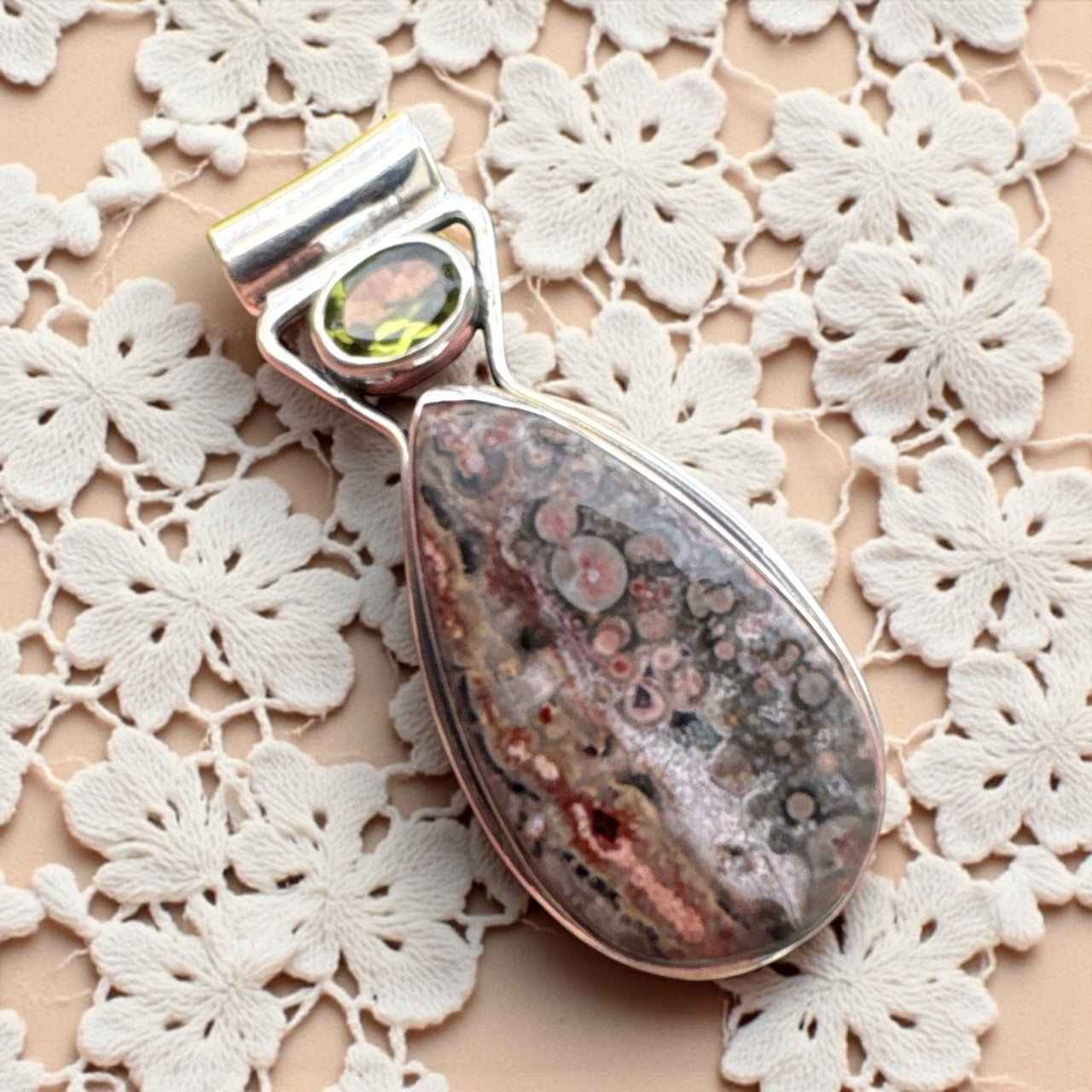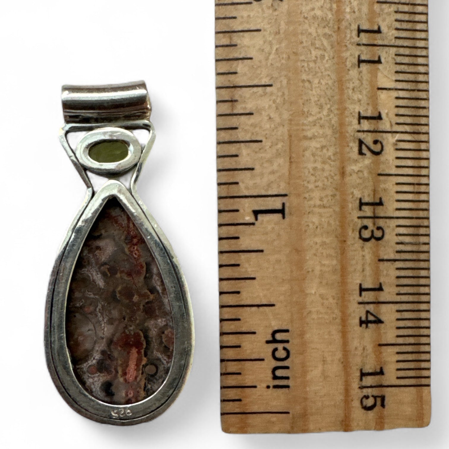 Leopardskin Jasper & Peridot Solid 925 Sterling Silver Pendant