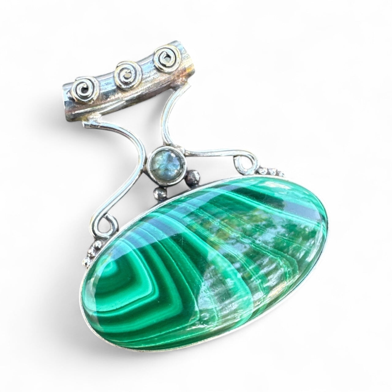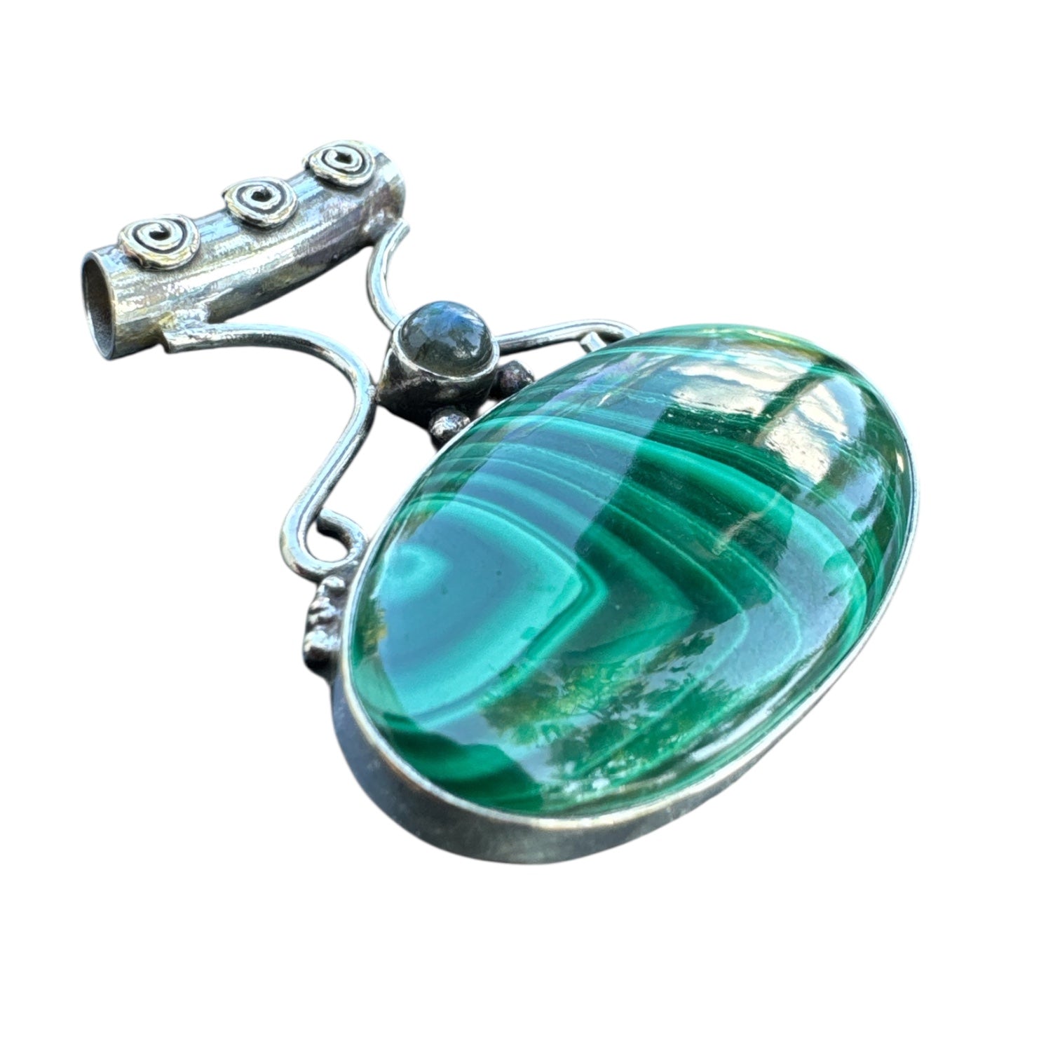 Malachite & Labradorite Solid 925 Sterling Silver Pendant