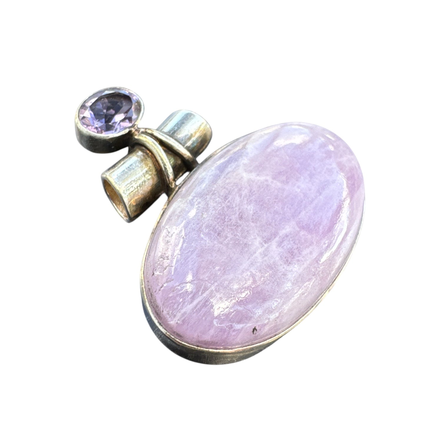 Pink Kunzite & Amethyst Solid 925 Sterling Silver Pendant