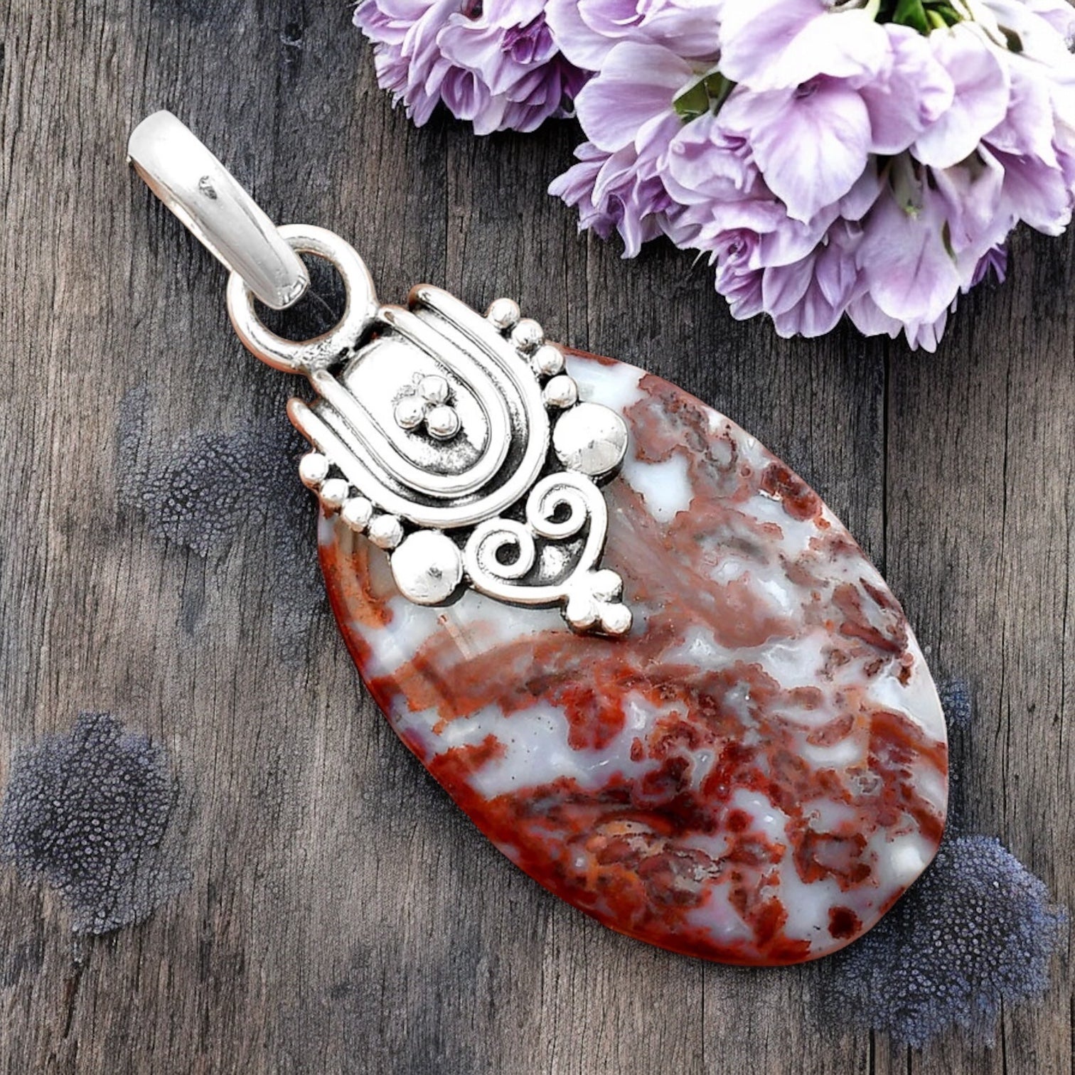 Red Moss Agate Solid 925 Sterling Silver Pendant