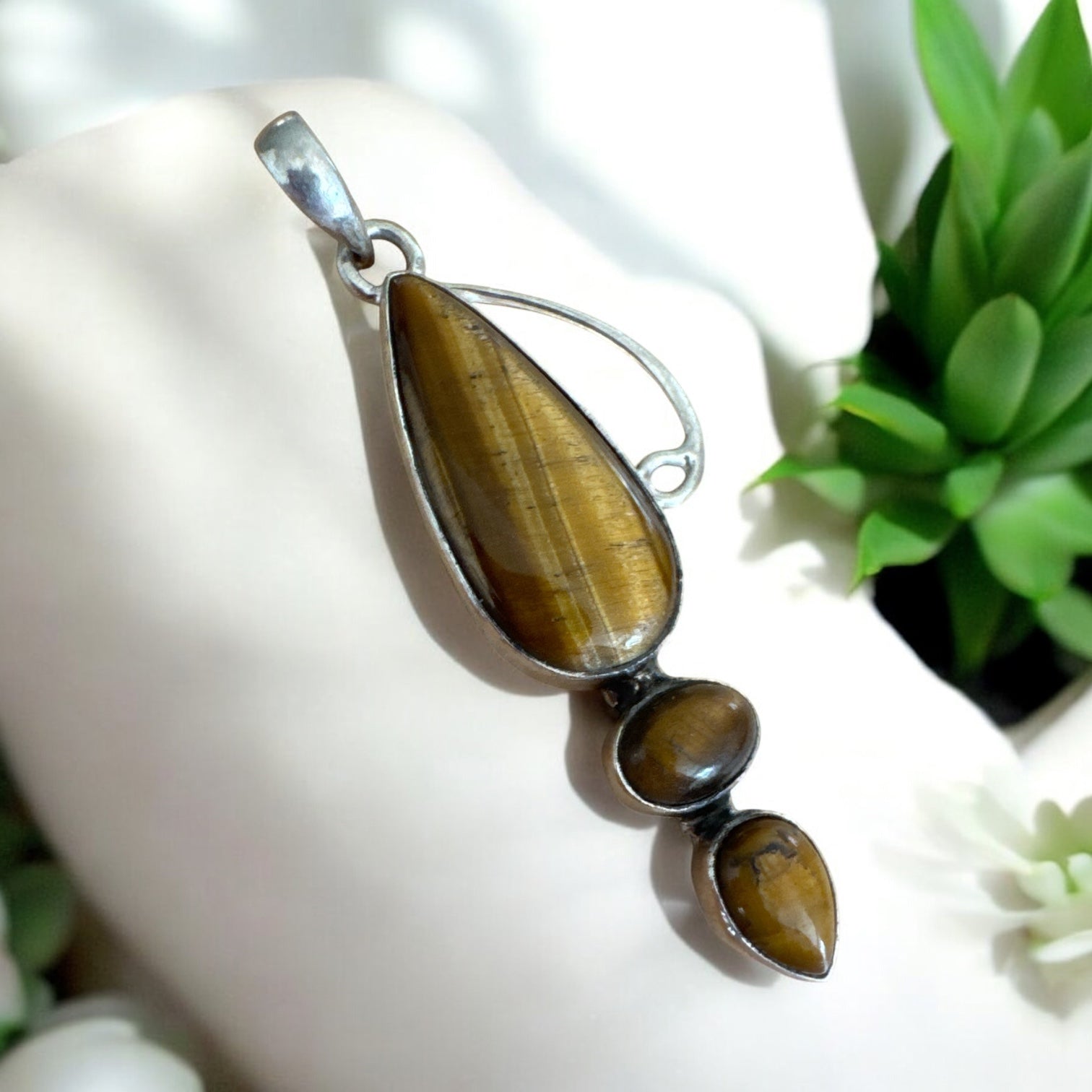 Tiger Eye Solid 925 Sterling Silver Pendant