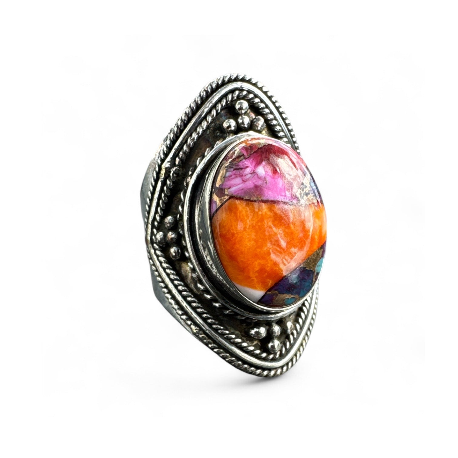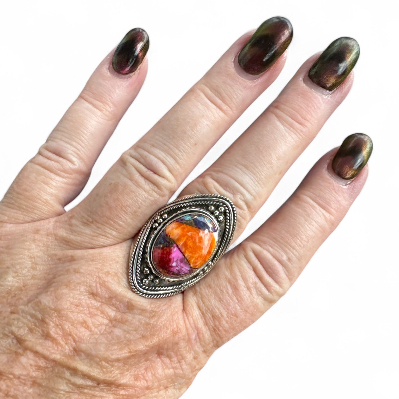 Kingman Pink Dahlia Turquoise Solid 925 Sterling Silver Ring 9