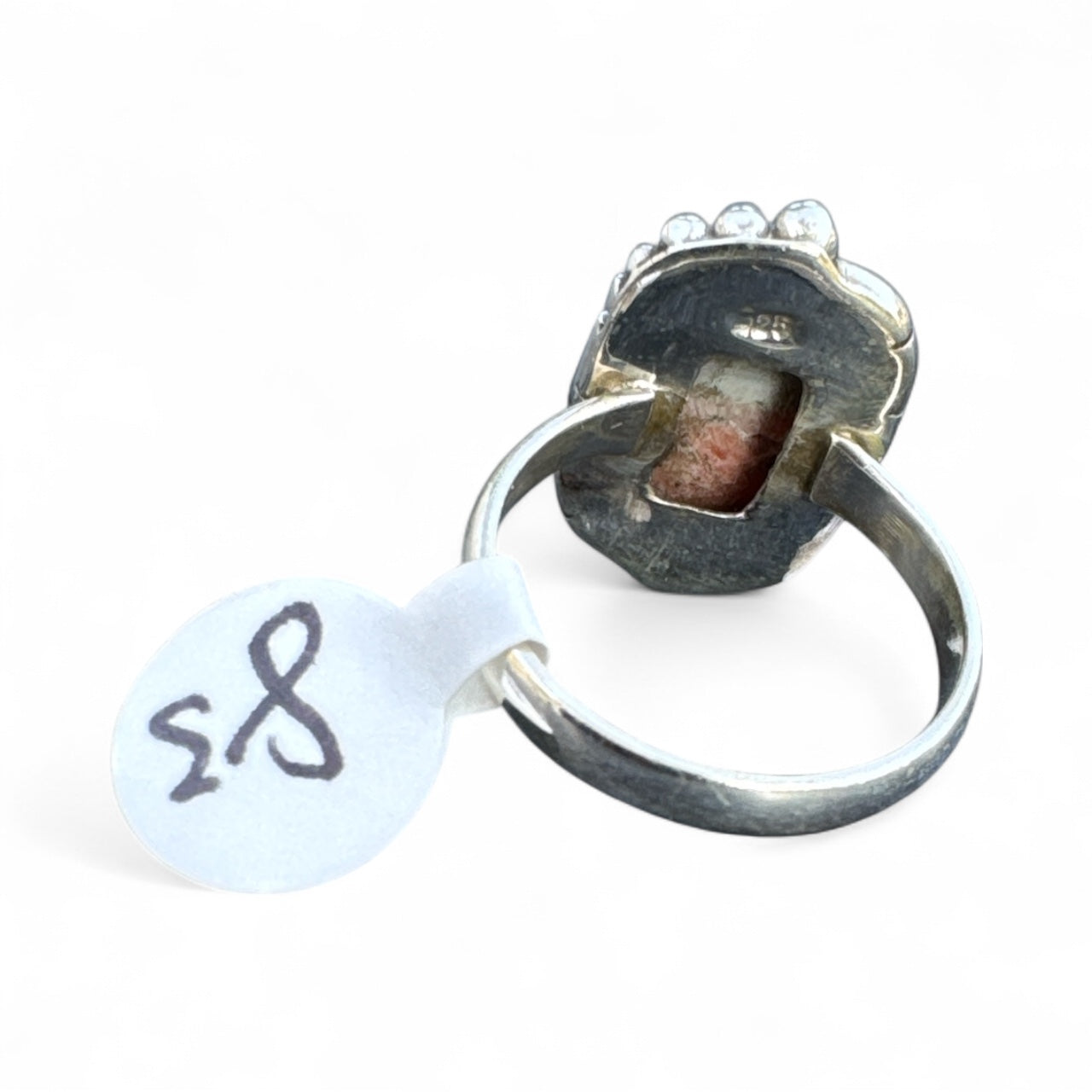 Kingman Turquoise & Spiny Oyster Solid 925 Sterling Silver Ring 8.5