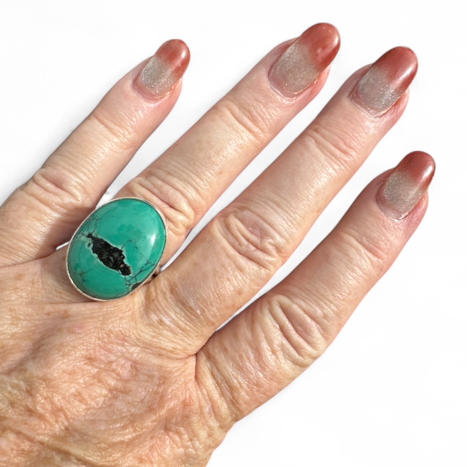 Tibetan Turquoise Solid 925 Sterling Silver Ring 6.5