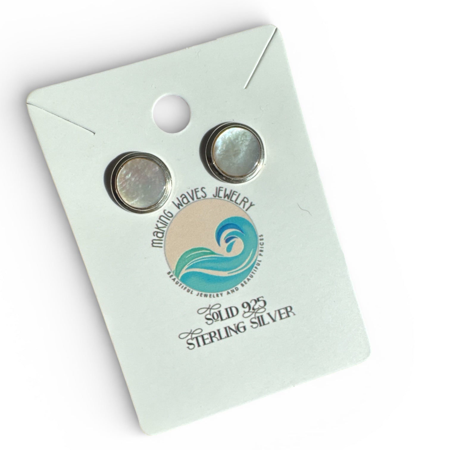 10 mm Mother of Pearl Solid 925 Sterling Silver Stud Earrings