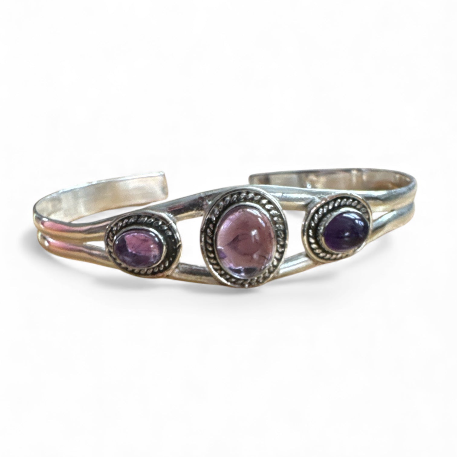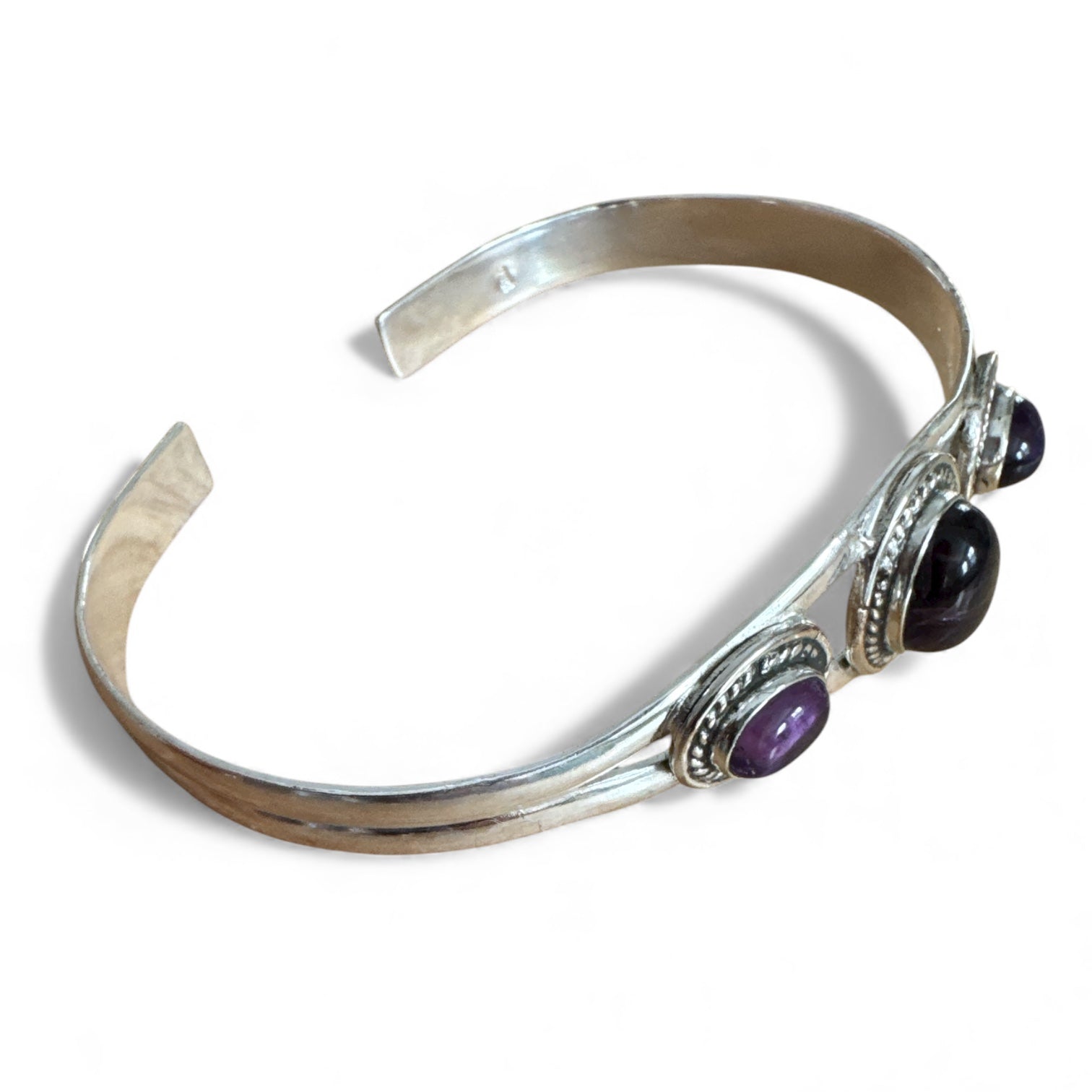 Amethyst Solid 925 Sterling Silver Cuff Bracelet