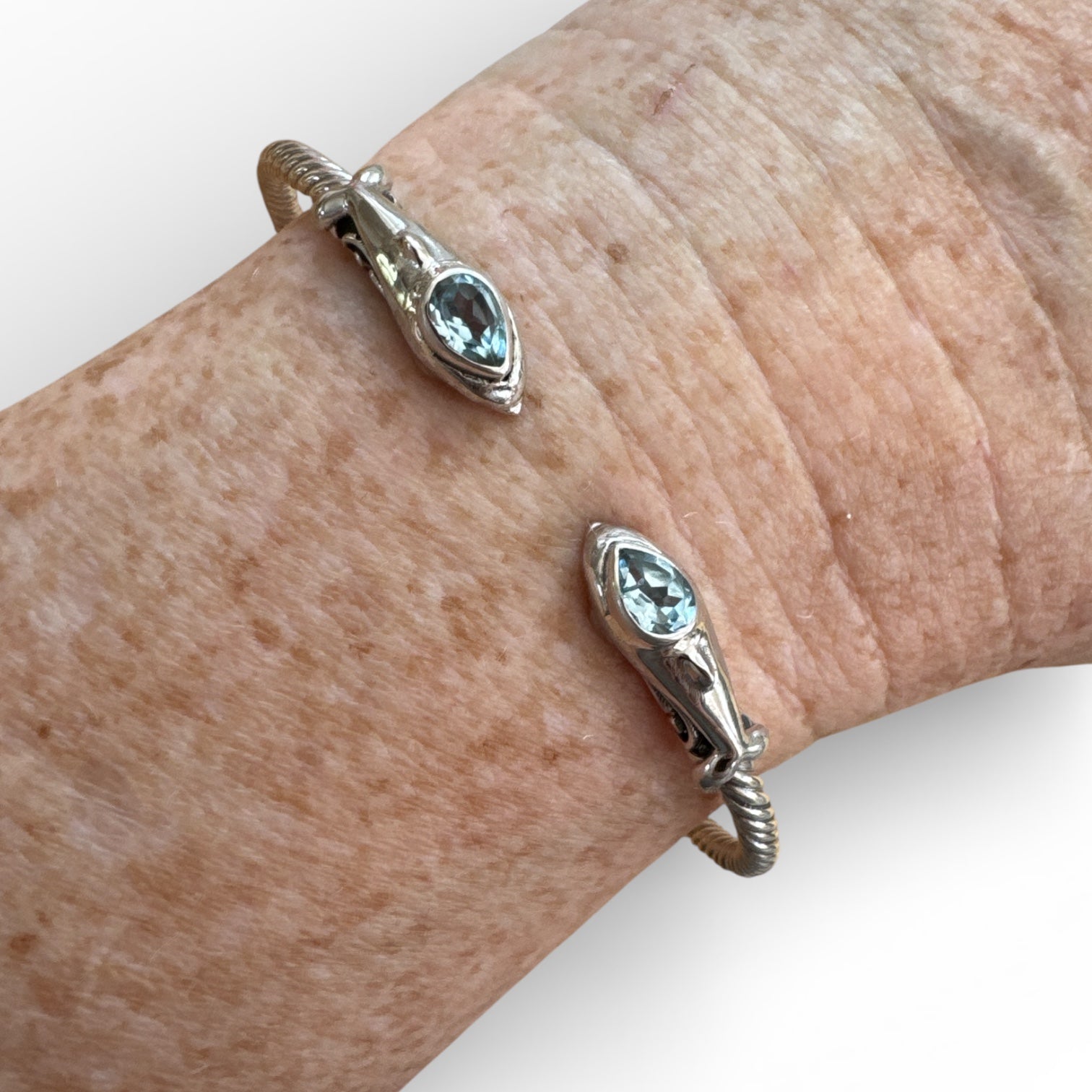 Bali Blue Topaz Solid 925 Sterling Silver Cuff Bracelet