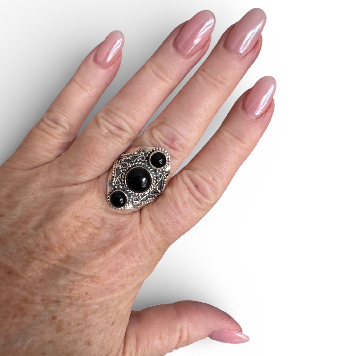 Black Onyx Solid 925 Sterling Silver Ring 10.5