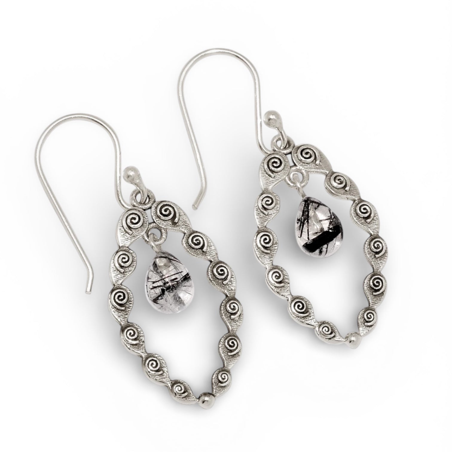 Black Rutilated Quartz Solid 925 Sterling Silver Earrings