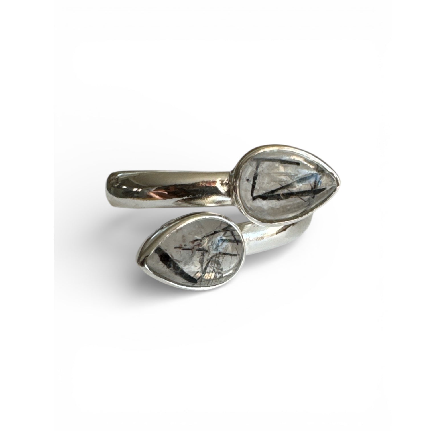 Black Rutilated Quartz Solid 925 Sterling Silver Ring ADJ