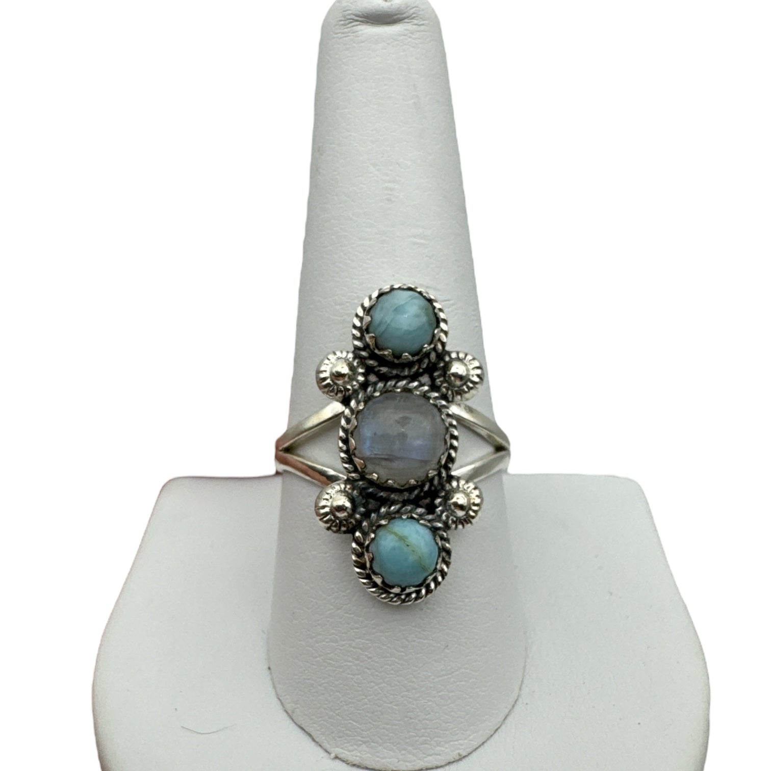 Caribbean Larimar & Rainbow Moonstone Solid 925 Sterling Silver Ring 9.5