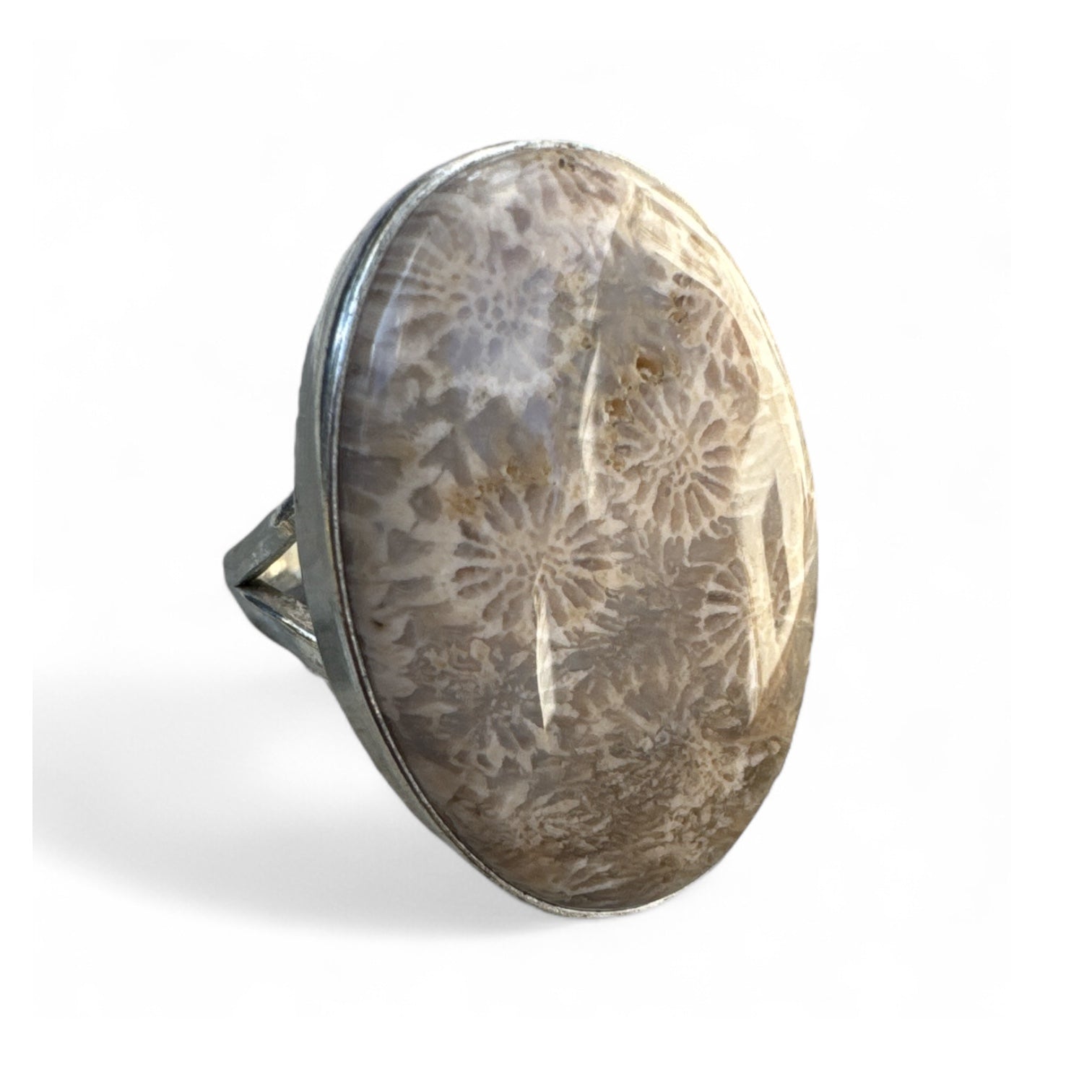 Fossilized Coral Solid 925 Sterling Silver Ring 7.5