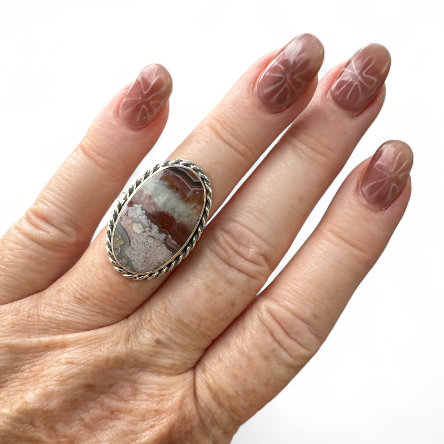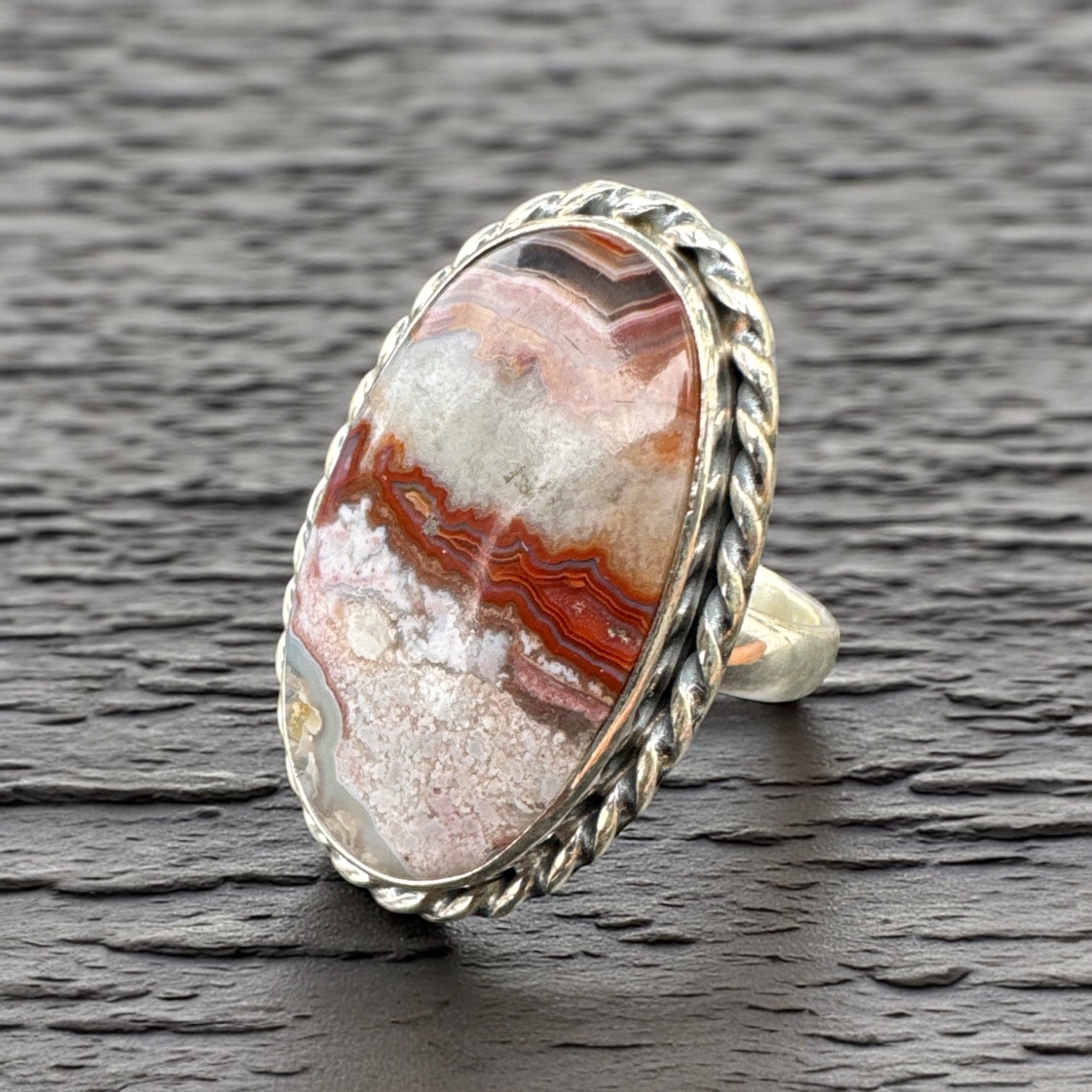 Crazy Lace Agate Solid 925 Sterling Silver Ring 6